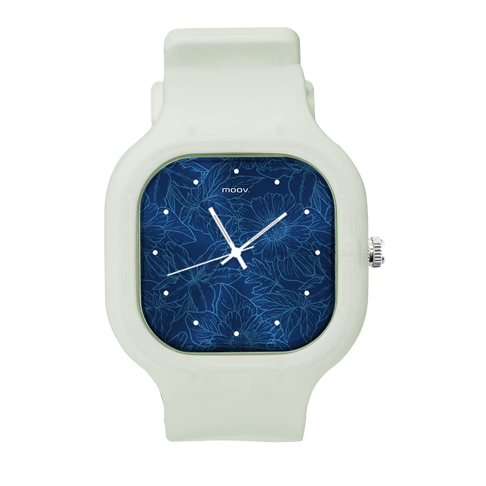 O Relógio Flowers Name da Moov. Watches tem um design incrível que vai chamar atenção por onde você passar, sua pulseira de silicone é tão confortável que você não vai sentir ele no seu pulso, além disso, ele tem um 1 ano de garantia.