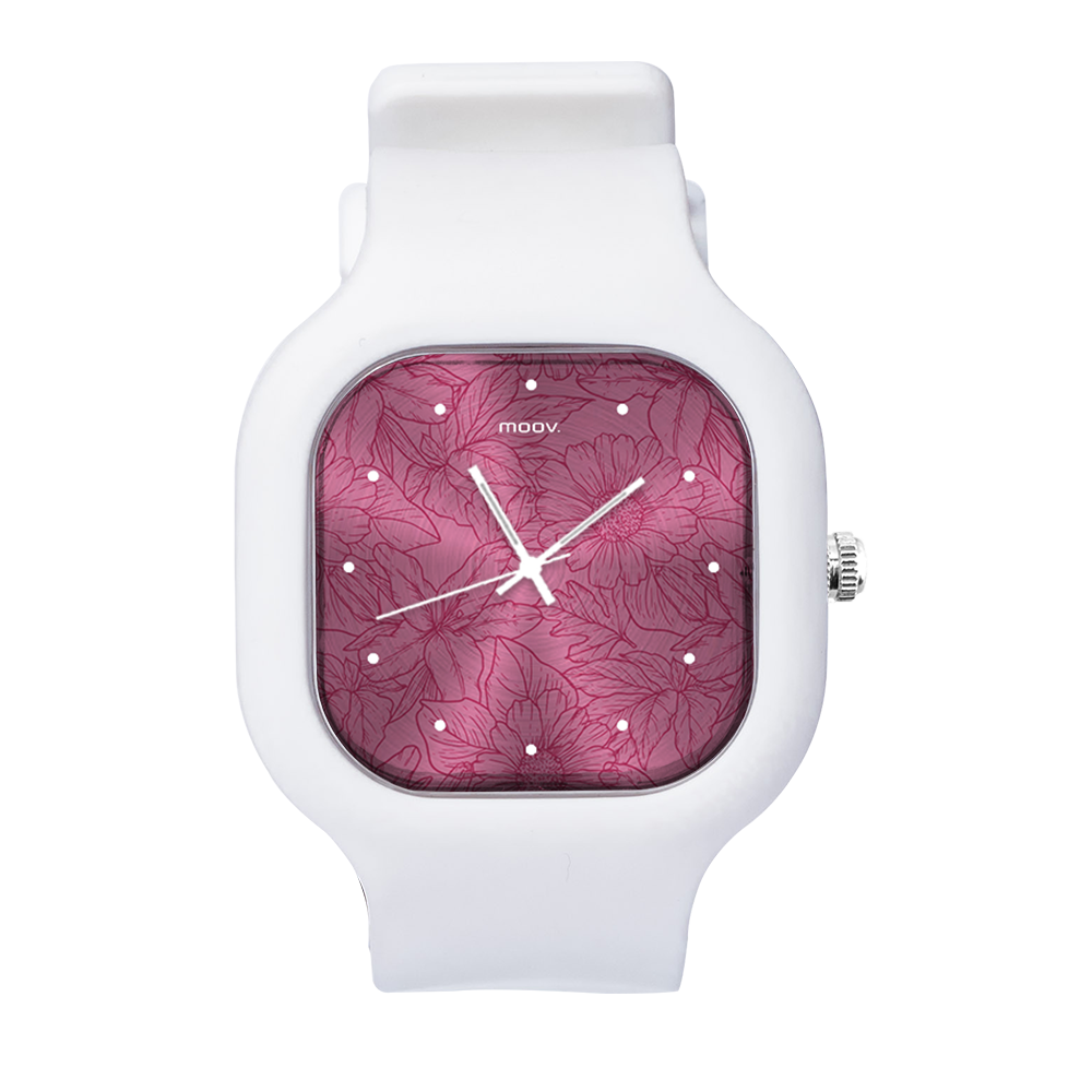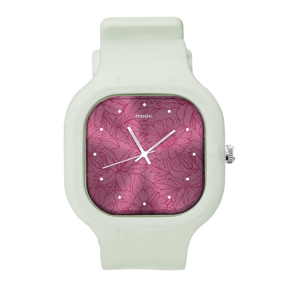 O Relógio Flowers Name da Moov. Watches tem um design incrível que vai chamar atenção por onde você passar, sua pulseira de silicone é tão confortável que você não vai sentir ele no seu pulso, além disso, ele tem um 1 ano de garantia.