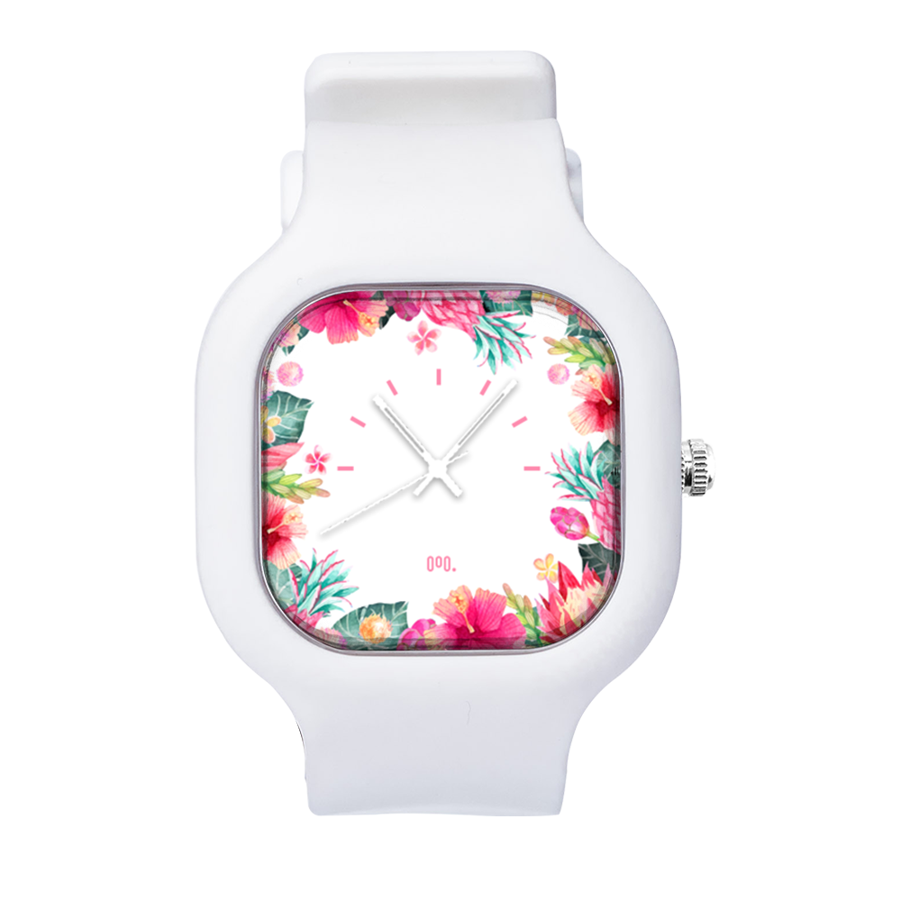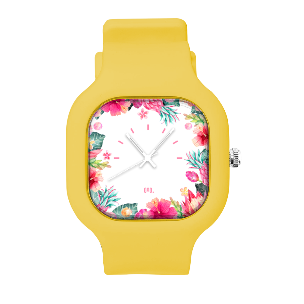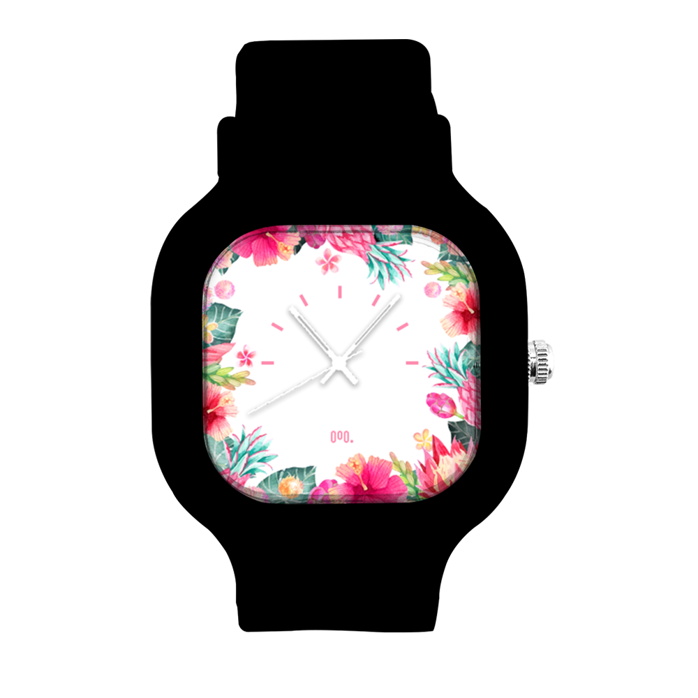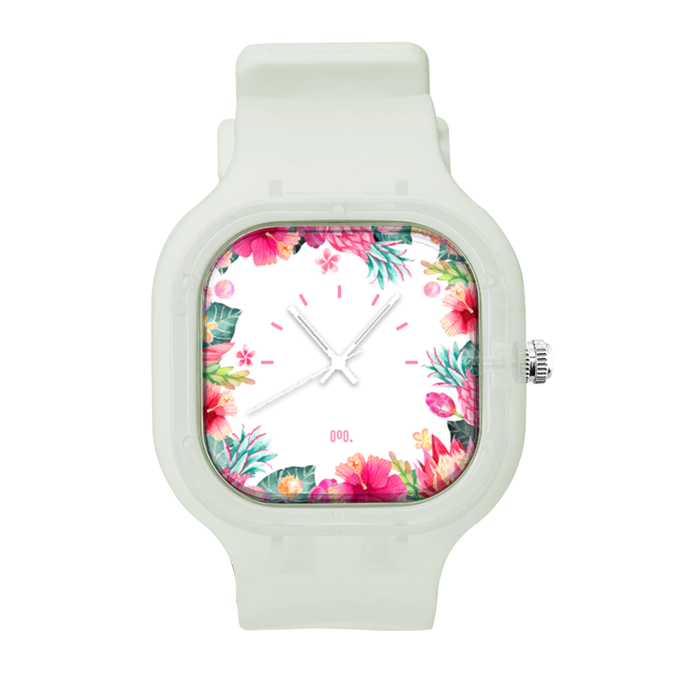 O Relógio Tropical Floral da Moov. Watches tem o design incrível que vai chamar atenção por onde você passar, sua pulseira de silicone é tão confortável que vai ajustar perfeitamente no seu braço que você não vai sentir ele no seu pulso.