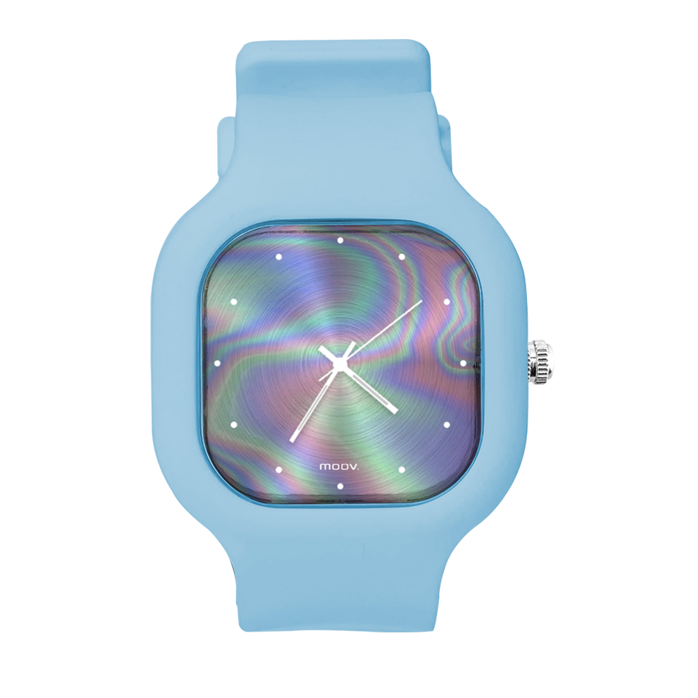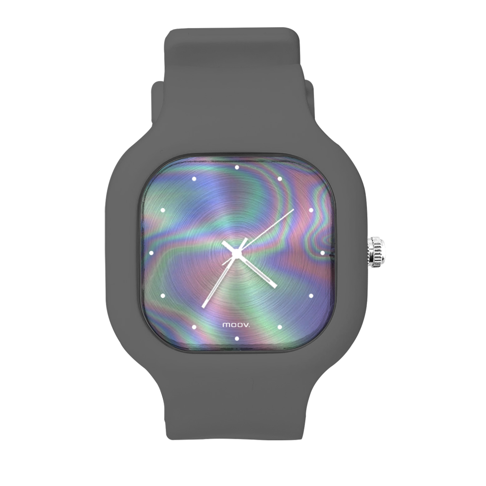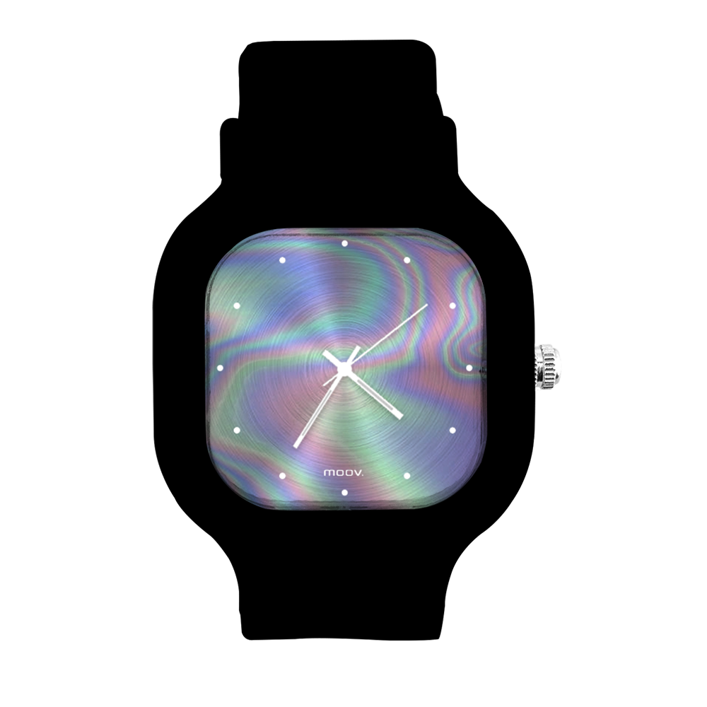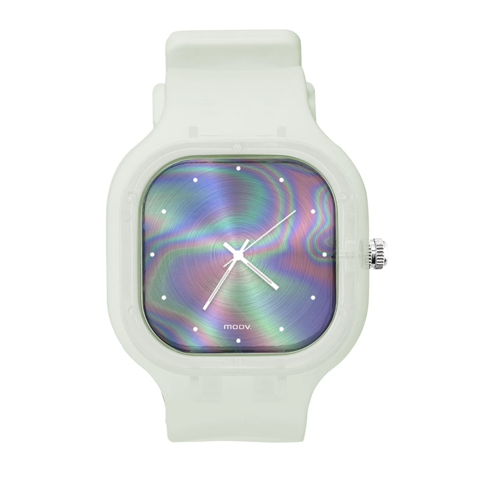 O Relógio Iridescent da Moov. Watches tem o design incrível que vai chamar atenção por onde você passar, sua pulseira de silicone é tao confortável e vai ajustar no seu pulso que você não vai sentir ele no seu pulso.