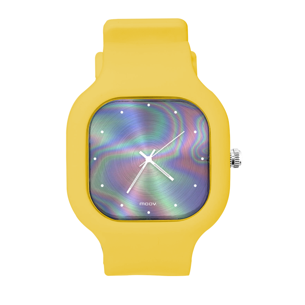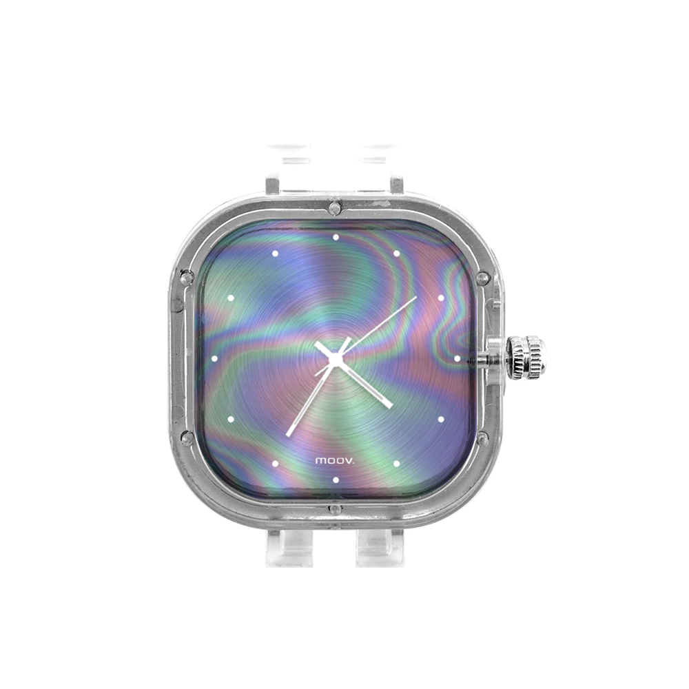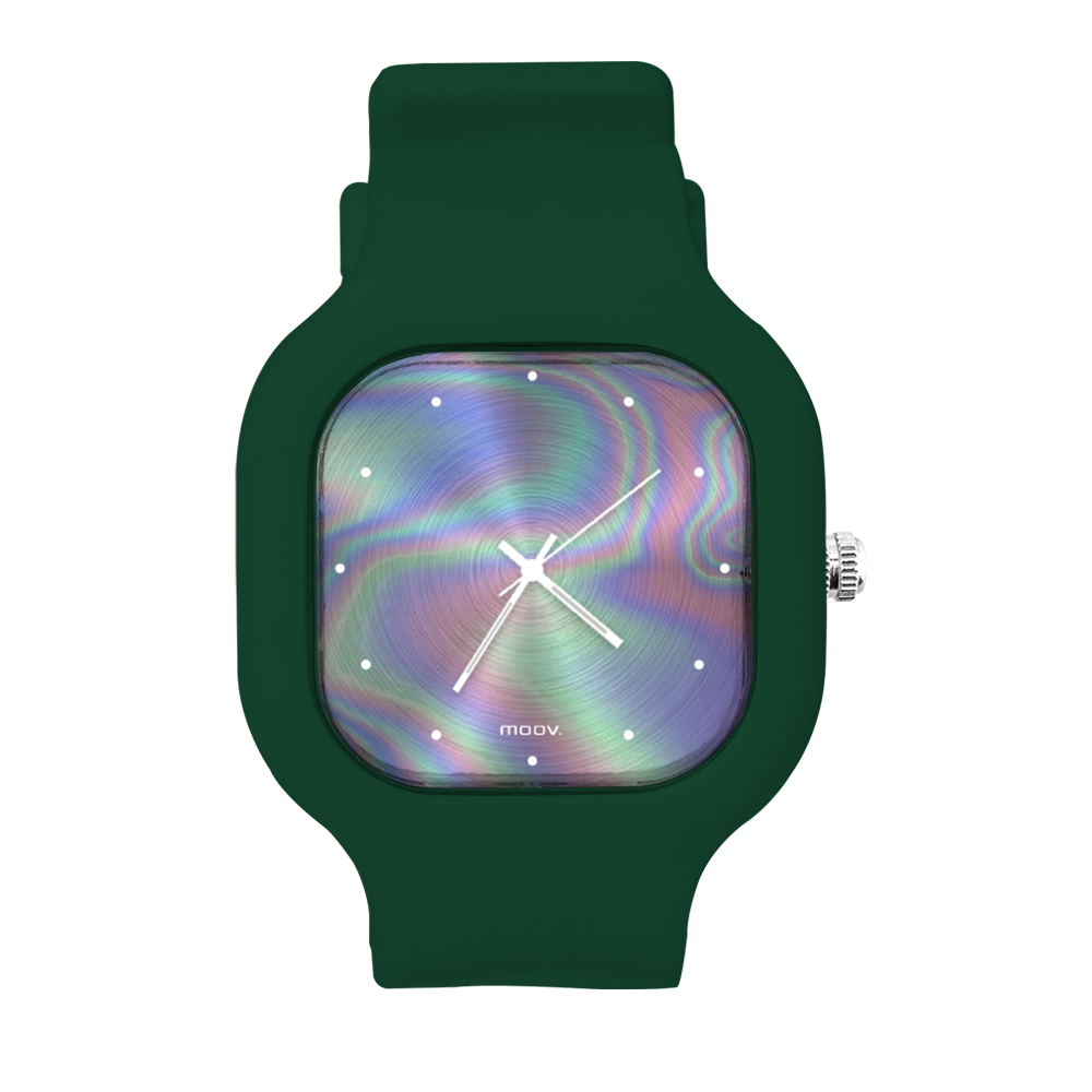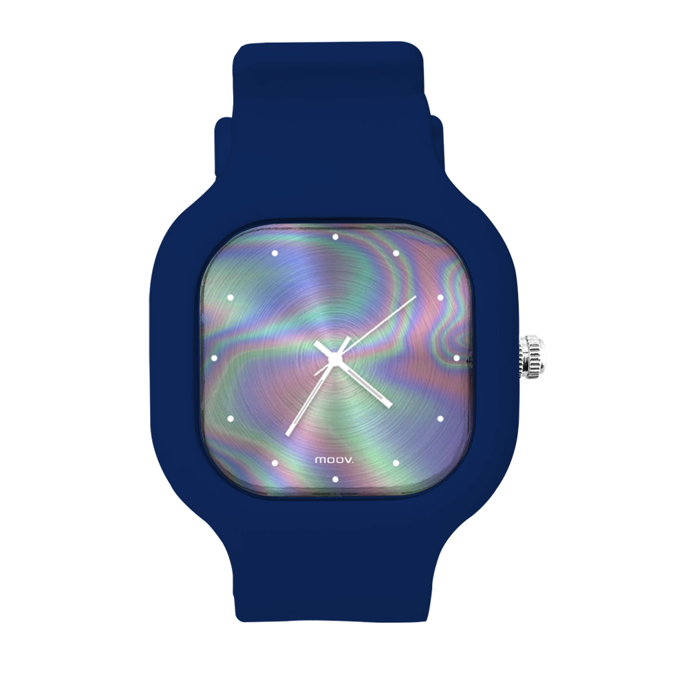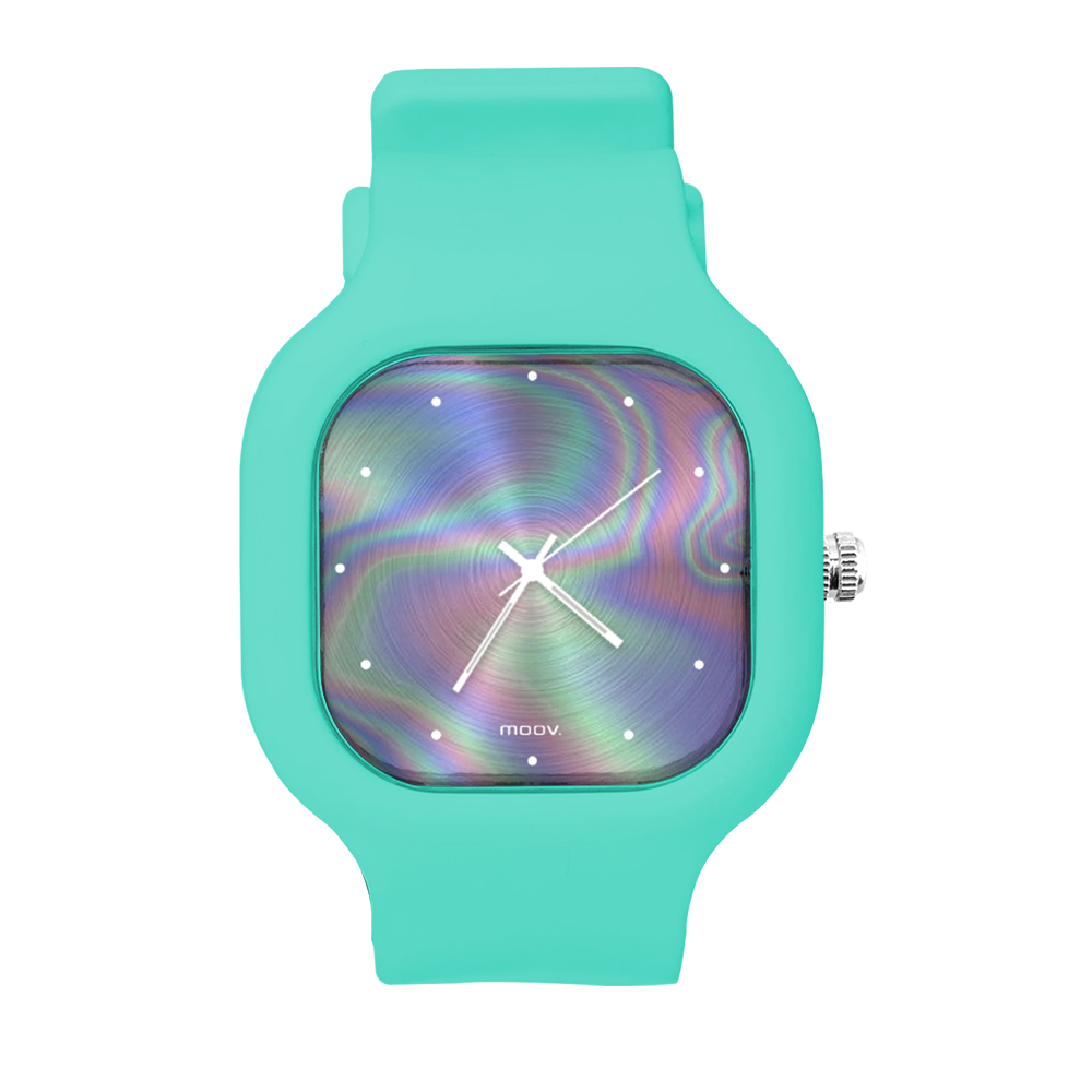 O Relógio Iridescent da Moov. Watches tem o design incrível que vai chamar atenção por onde você passar, sua pulseira de silicone é tao confortável e vai ajustar no seu pulso que você não vai sentir ele no seu pulso.