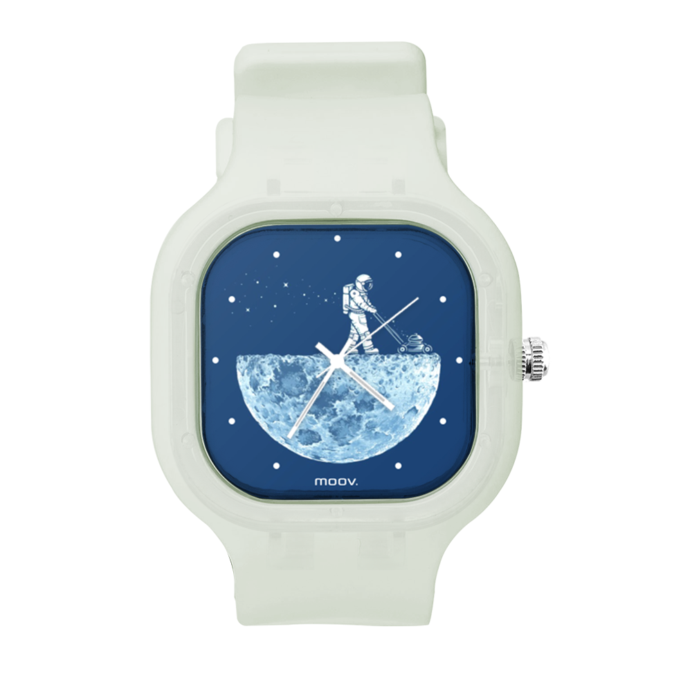 O Relógio Apollo 11 da Moov. Watches tem um design incrível que vai chamar atenção por onde você passar, sua pulseira de silicone é tao confortável e vai ajustar no seu pulso que você não vai sentir ele no seu pulso.