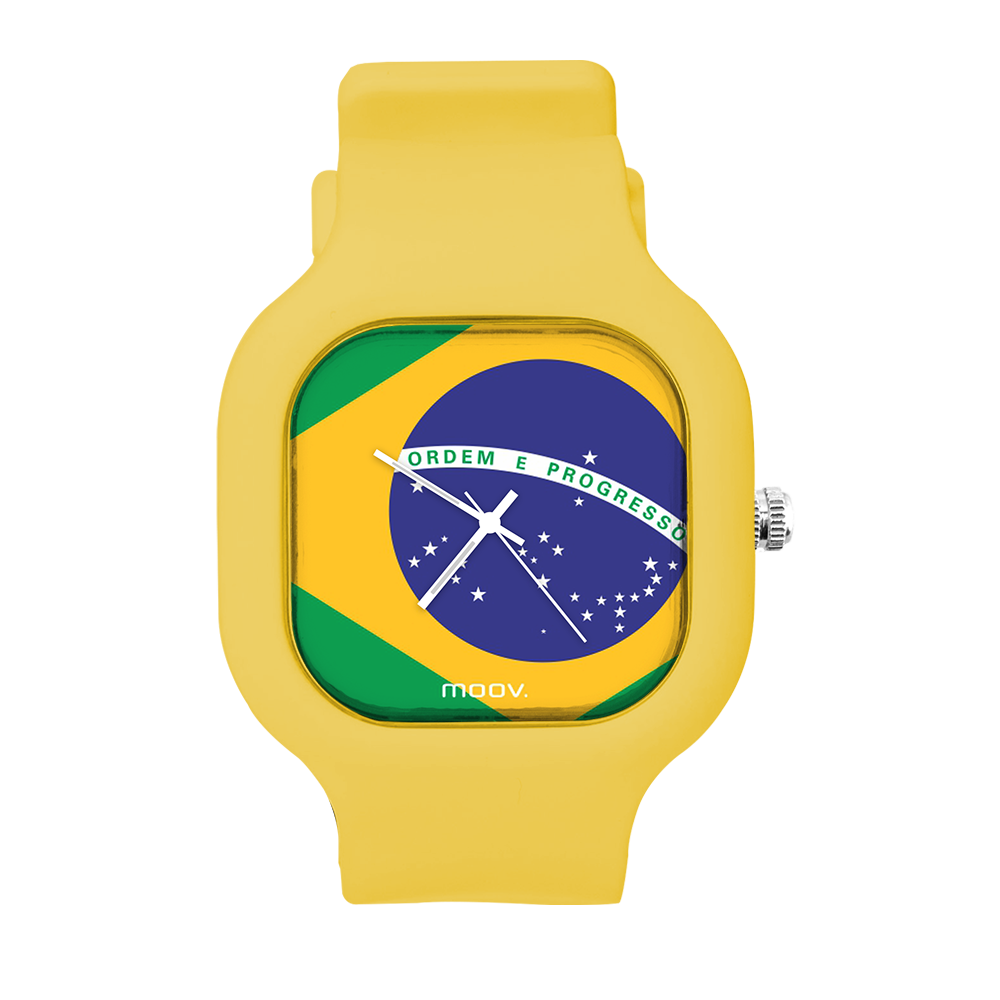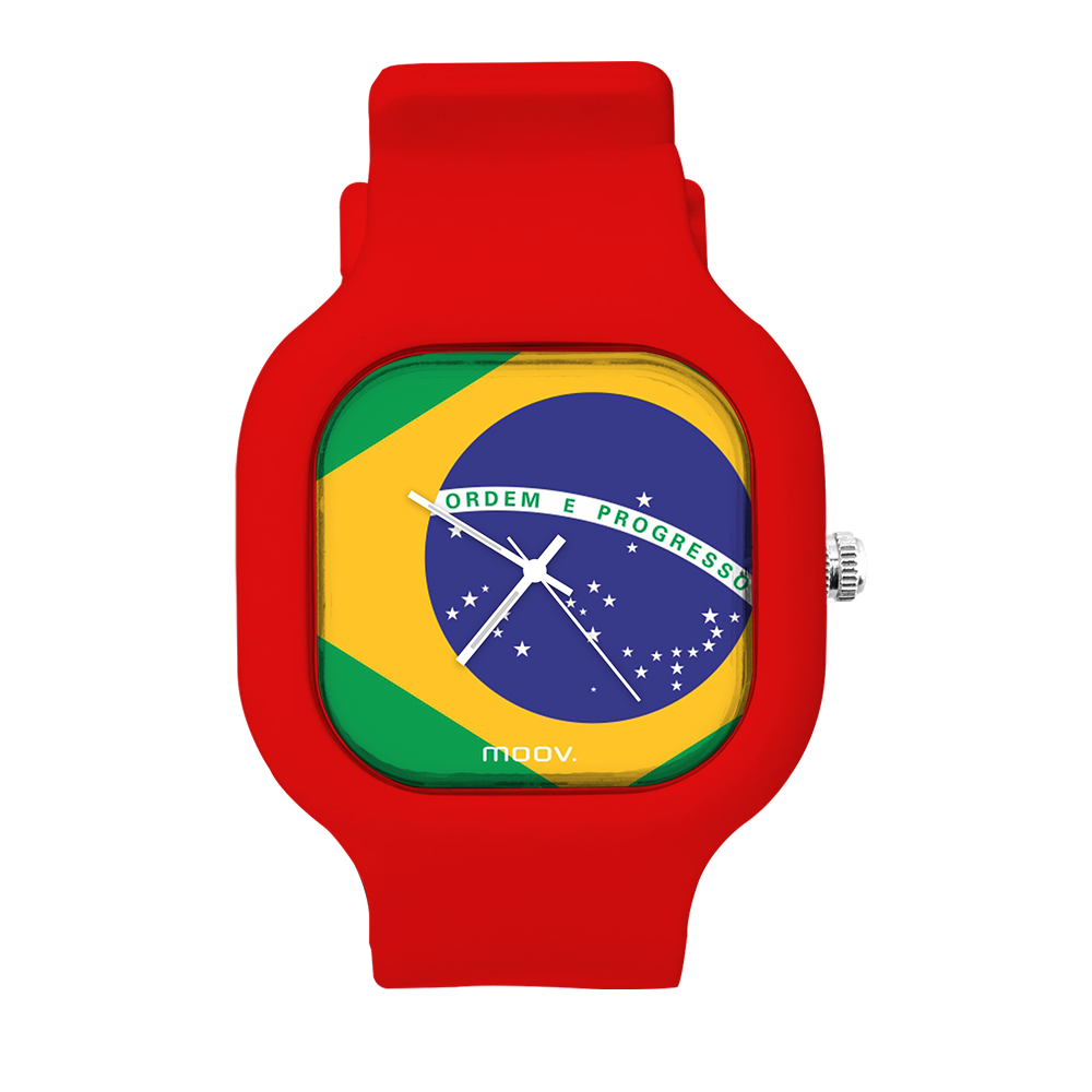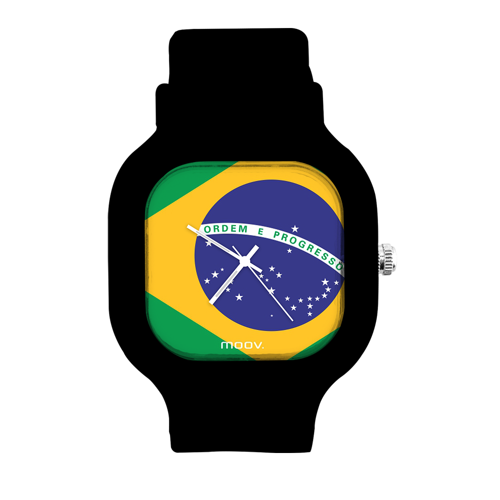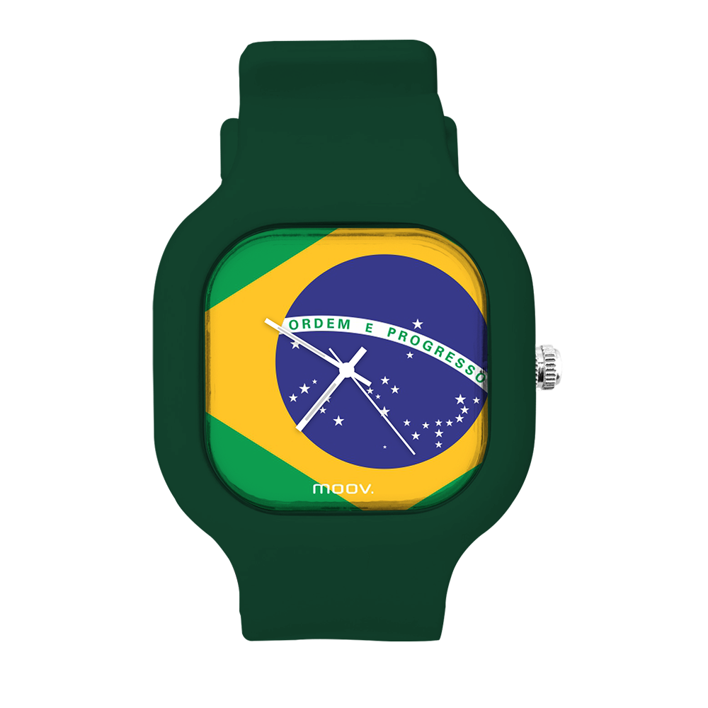 O Relógio Brazil Flag da Moov. Watches foi inspirado na Bandeira do Brasil, feito para as pessoas que ama o Brasil, além disso ele tem um design incrível que vai chamar atenção por onde você passar, sua pulseira de silicone é tao confortável e vai ajustar no seu pulso que você não vai sentir ele no seu pulso.