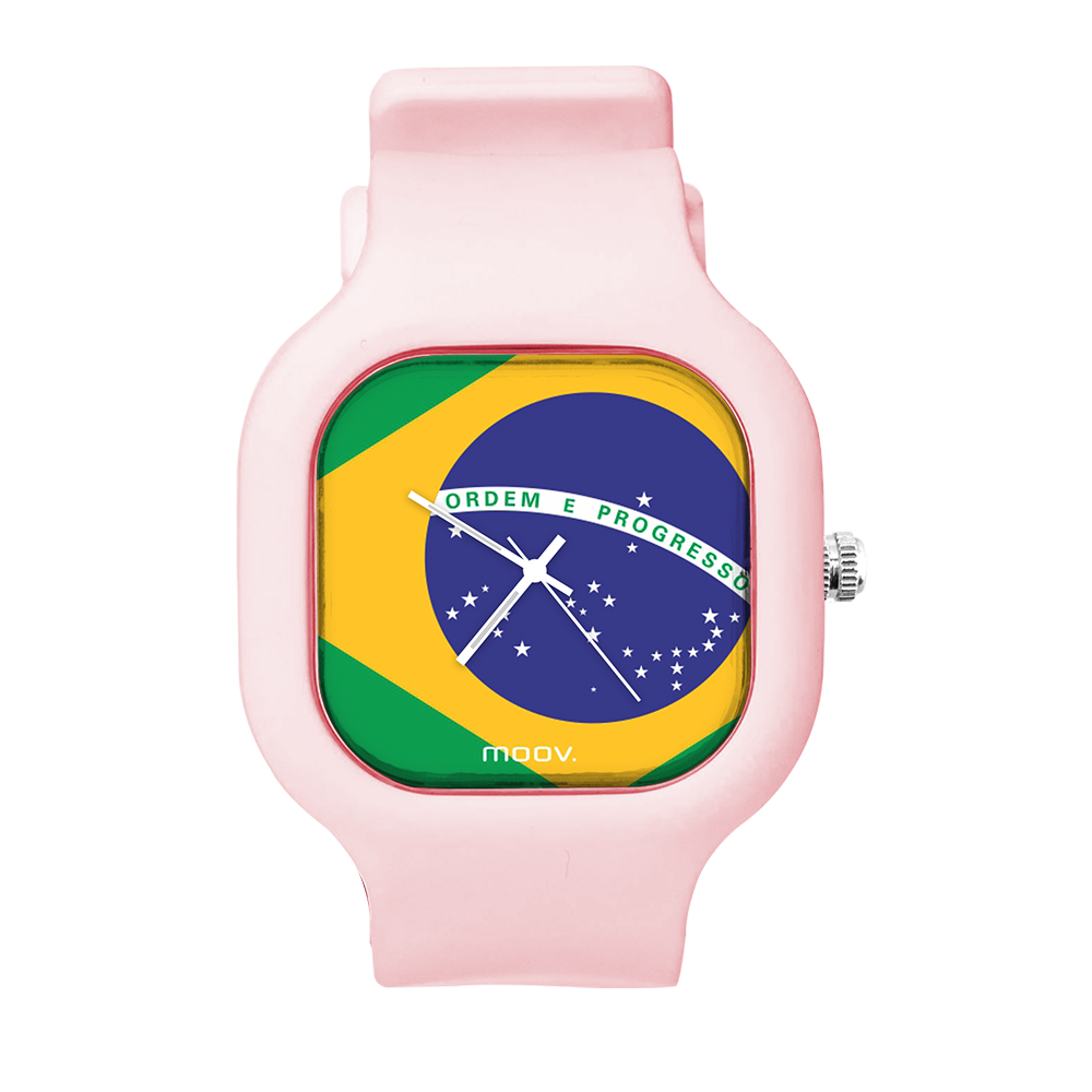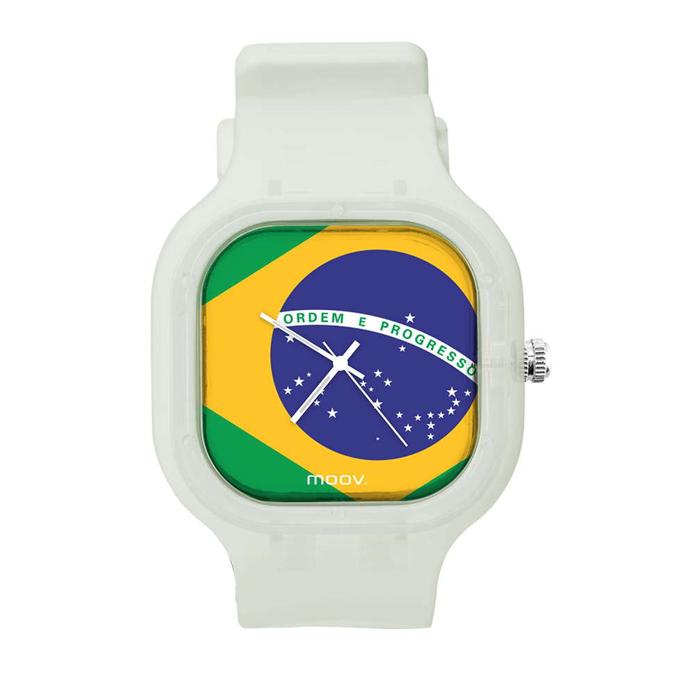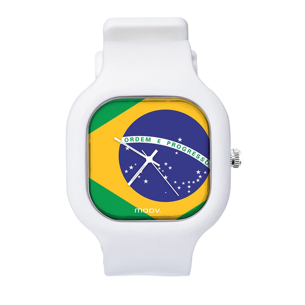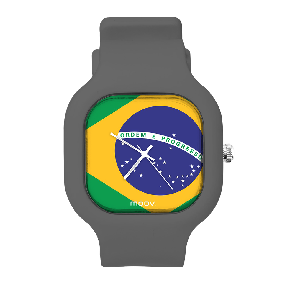O Relógio Brazil Flag da Moov. Watches foi inspirado na Bandeira do Brasil, feito para as pessoas que ama o Brasil, além disso ele tem um design incrível que vai chamar atenção por onde você passar, sua pulseira de silicone é tao confortável e vai ajustar no seu pulso que você não vai sentir ele no seu pulso.