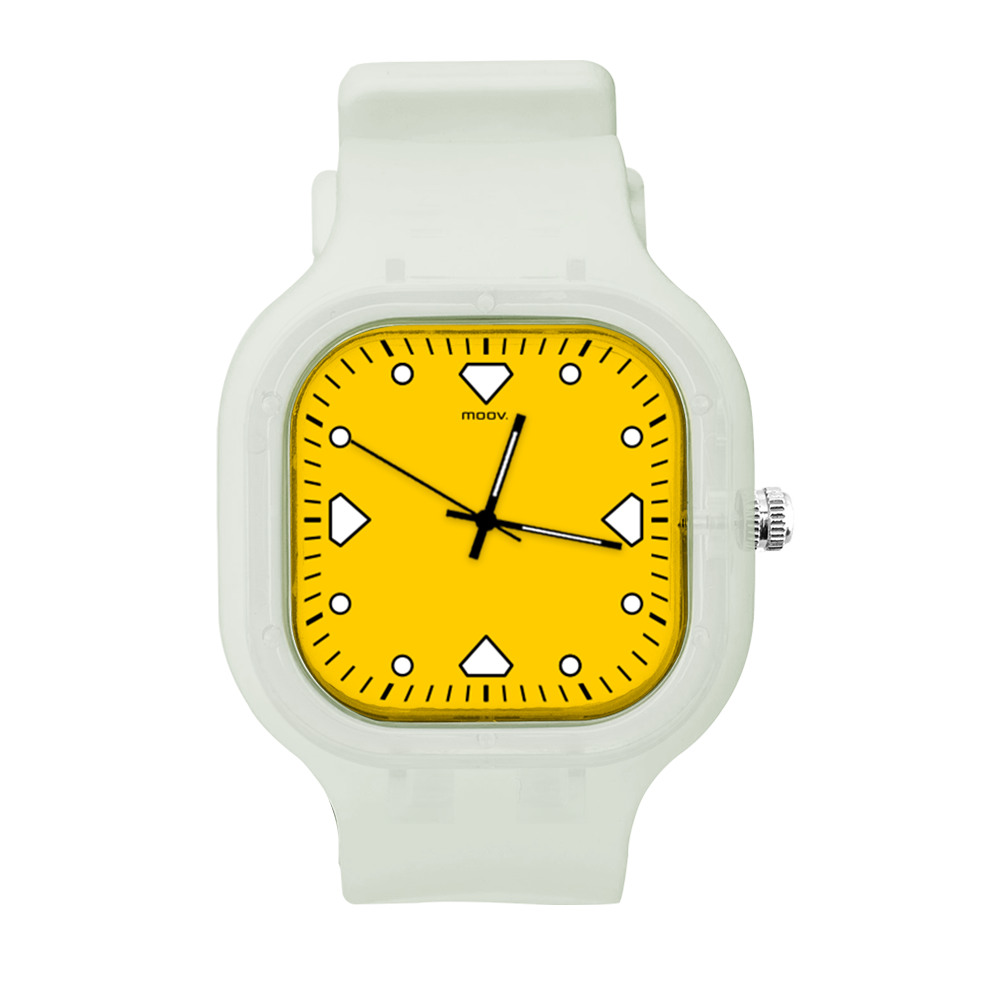 O Relógio Classic Diamonds - Yellow da Moov. Watches tem um design incrível que vai chamar atenção por onde você passar, sua pulseira de silicone é tão confortável que você não vai sentir ele no seu pulso, além disso, ele tem um 1 ano de garantia.