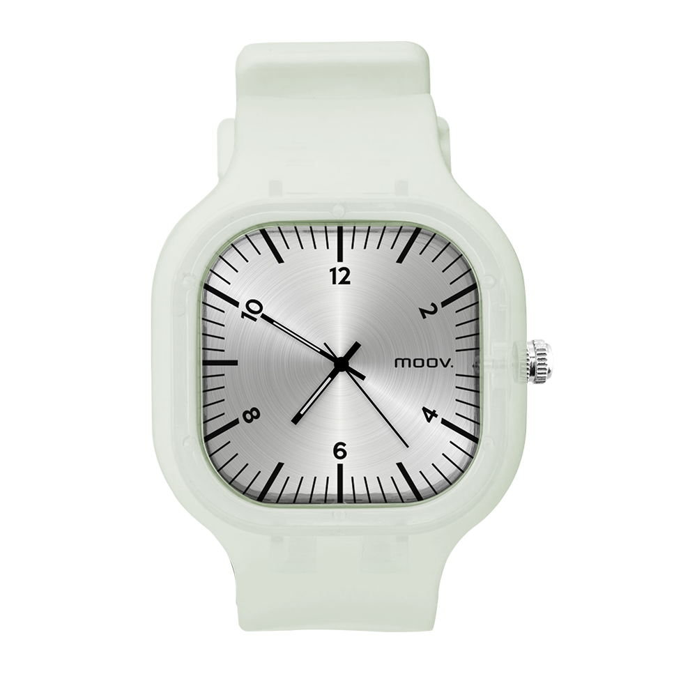 O Relógio Classic Silver da Moov. Watches tem um design incrível que vai chamar atenção por onde você passar, sua pulseira de silicone é tão confortável que você não vai sentir ele no seu pulso, além disso, ele tem um 1 ano de garantia.