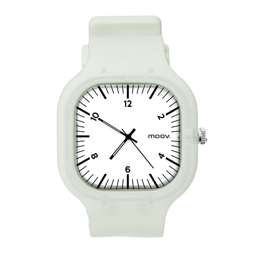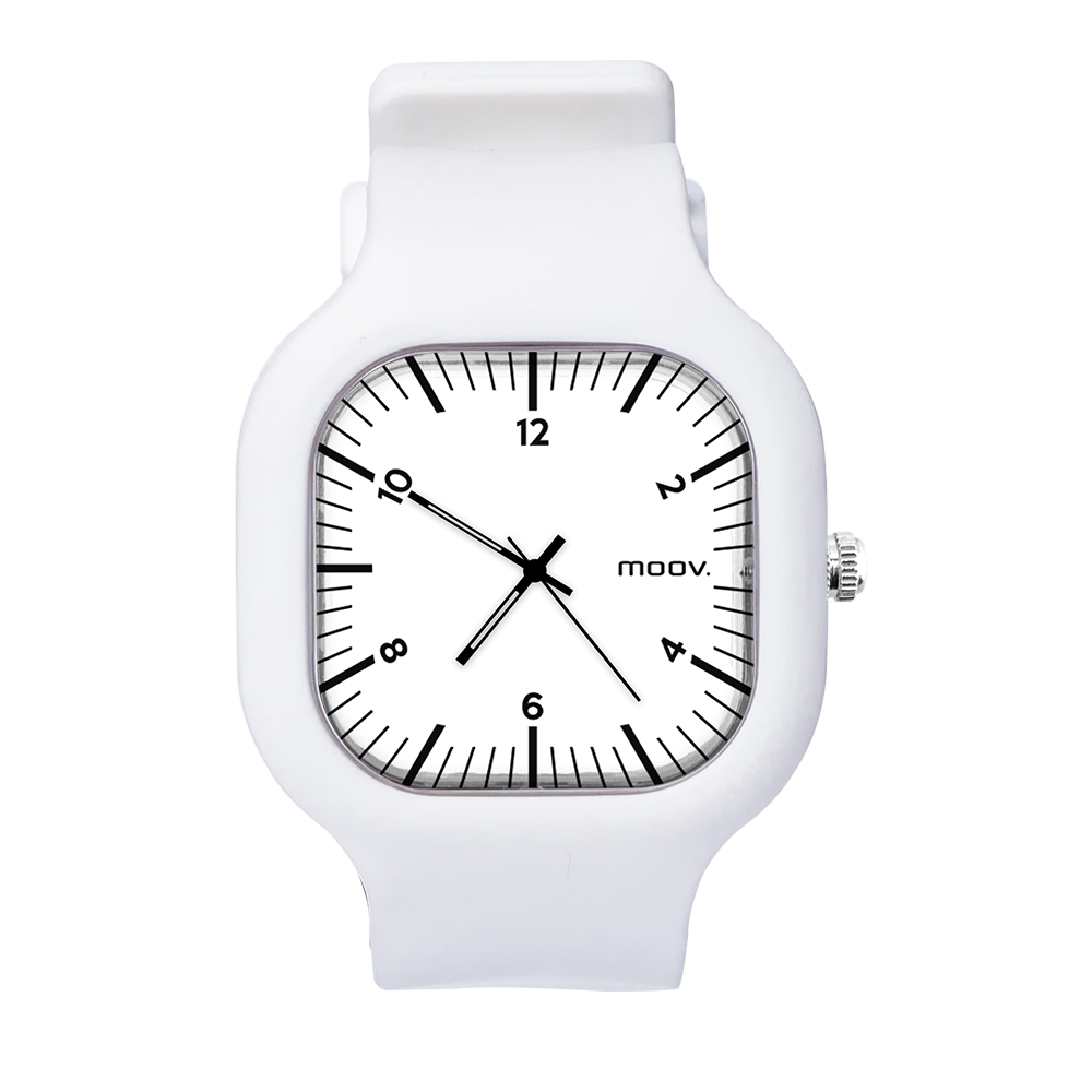 O Relógio Classic White da Moov. Watches tem um design incrível que vai chamar atenção por onde você passar, sua pulseira de silicone é tao confortável e vai ajustar no seu pulso que você não vai sentir ele no seu pulso.