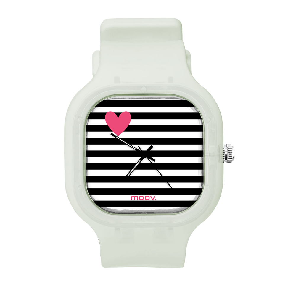 O Relógio Heart da Moov. Watches tem um design incrível que vai chamar atenção por onde você passar, sua pulseira de silicone é tao confortável e vai ajustar no seu pulso que você não vai sentir ele no seu pulso.