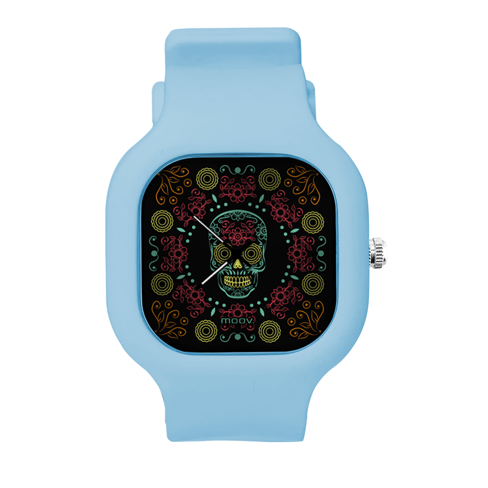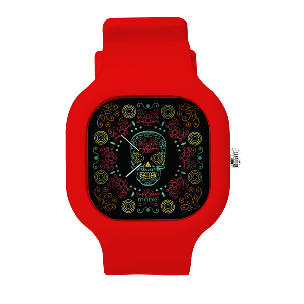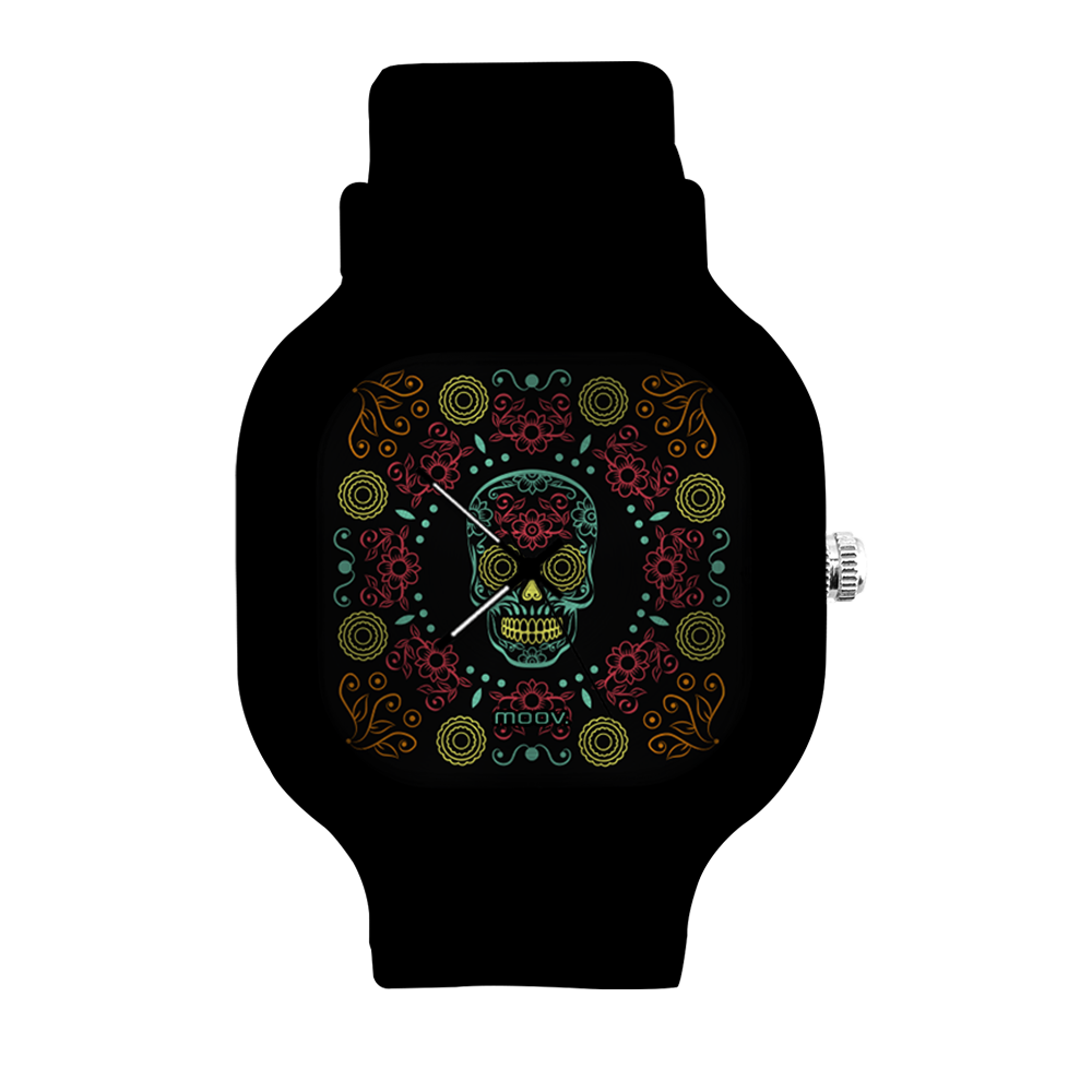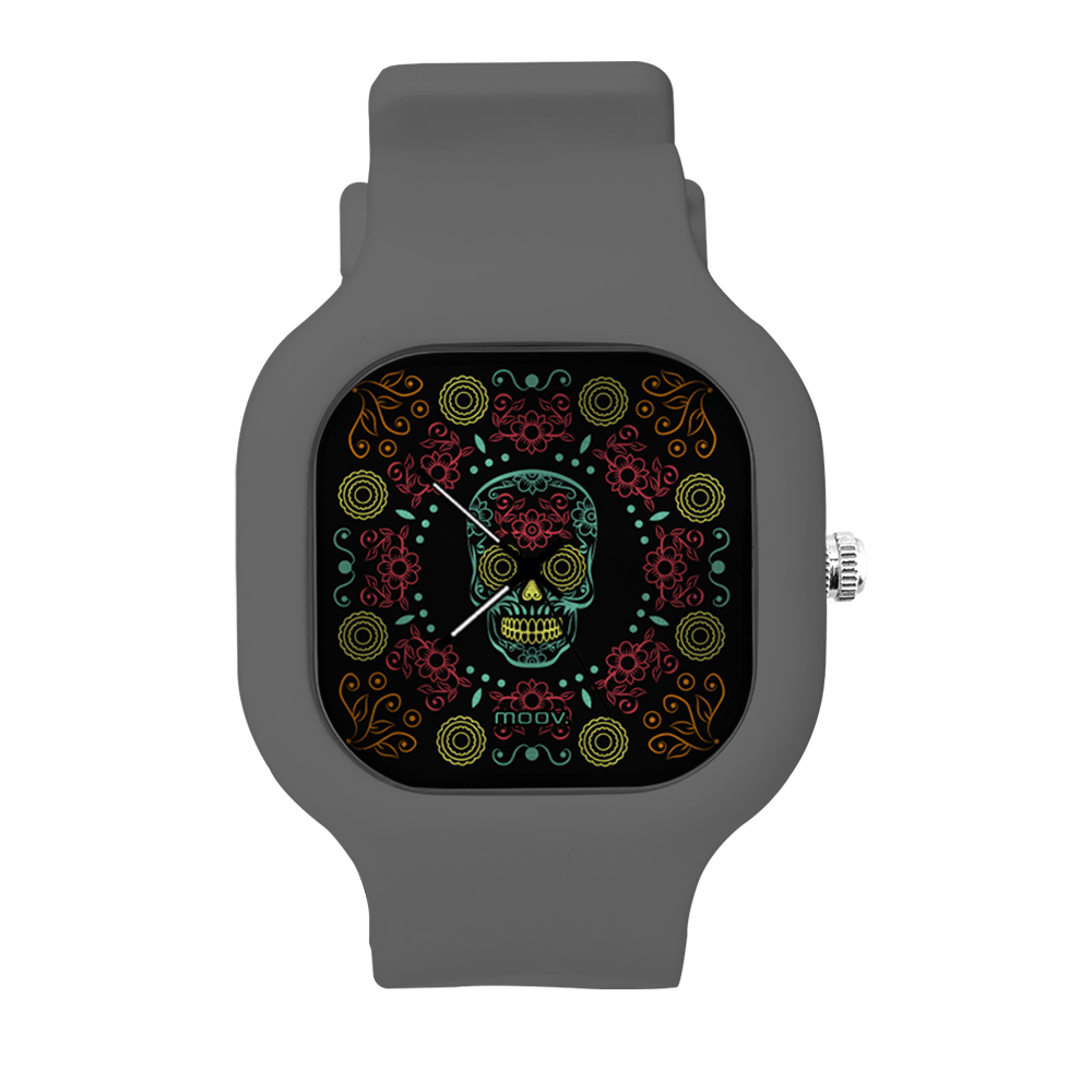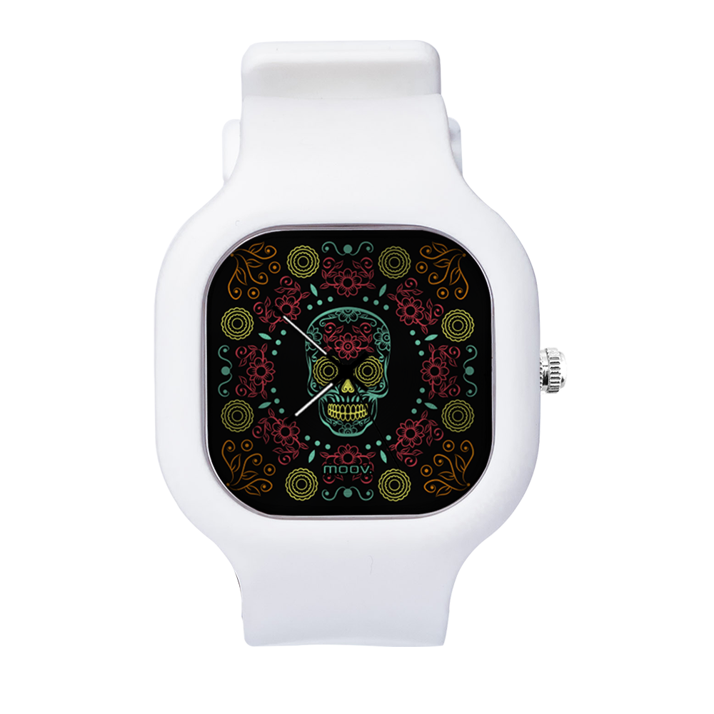 O Relógio Dia de Los Muertos da Moov. Watches tem um design incrível que vai chamar atenção por onde você passar, sua pulseira de silicone é tao confortável e vai ajustar no seu pulso que você não vai sentir ele no seu pulso.