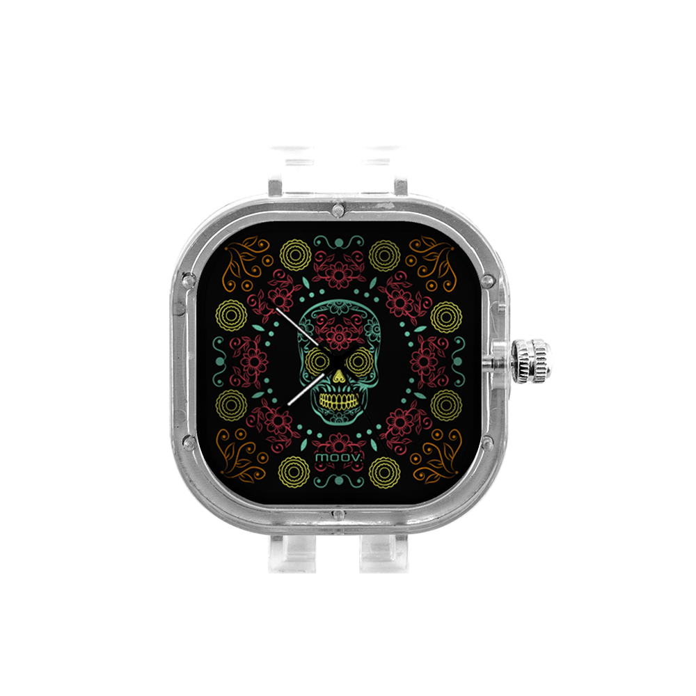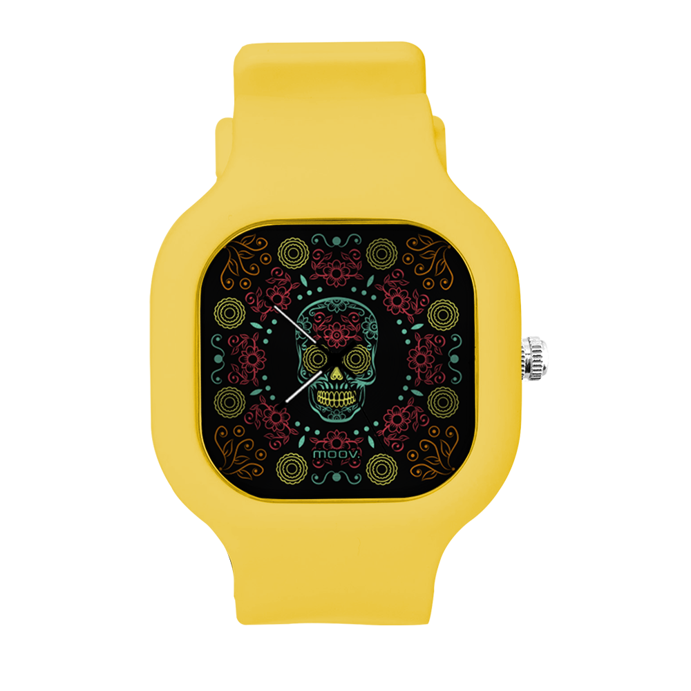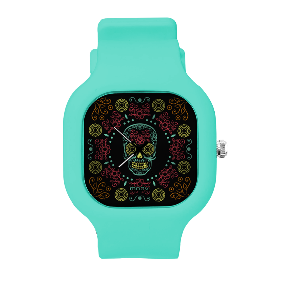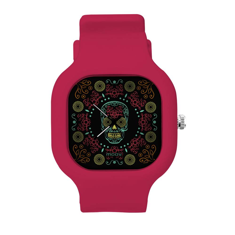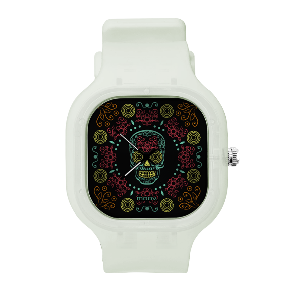 O Relógio Dia de Los Muertos da Moov. Watches tem um design incrível que vai chamar atenção por onde você passar, sua pulseira de silicone é tao confortável e vai ajustar no seu pulso que você não vai sentir ele no seu pulso.