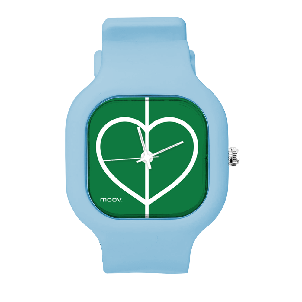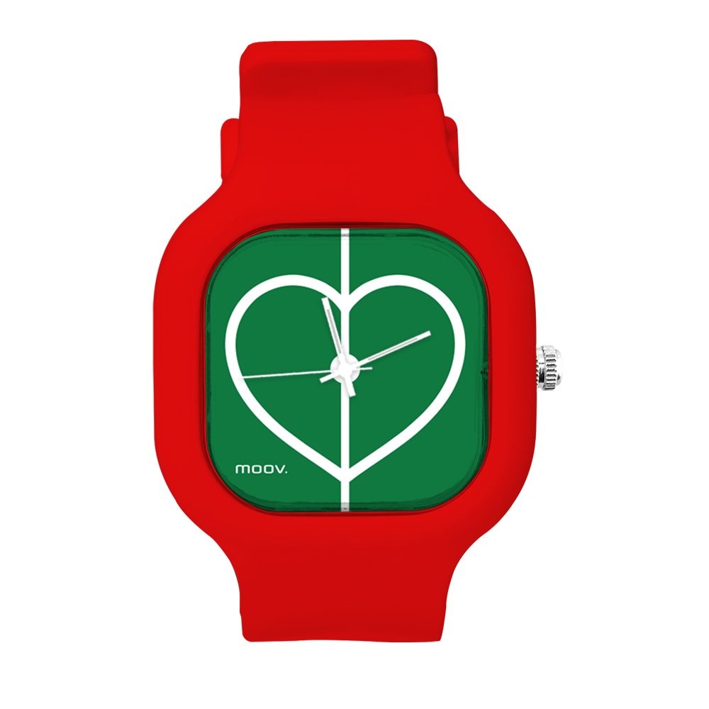 O Relógio Futebol Heart da Moov. Watches foi criado para os amantes de Futebol, alem disso ele tem um design incrível que vai chamar atenção por onde você passar, sua pulseira de silicone é tao confortável e vai ajustar no seu pulso que você não vai sentir ele no seu pulso.