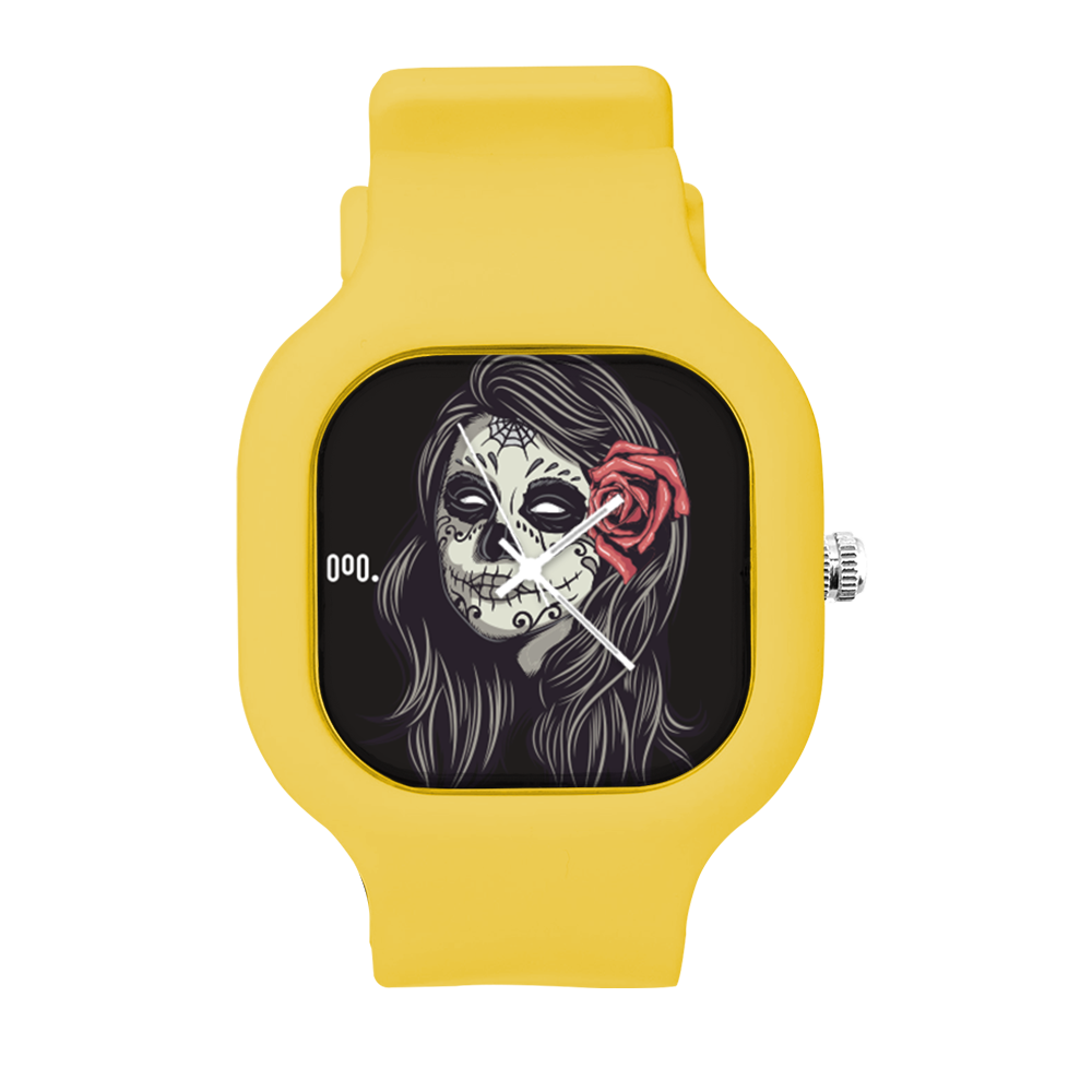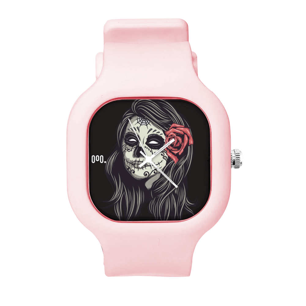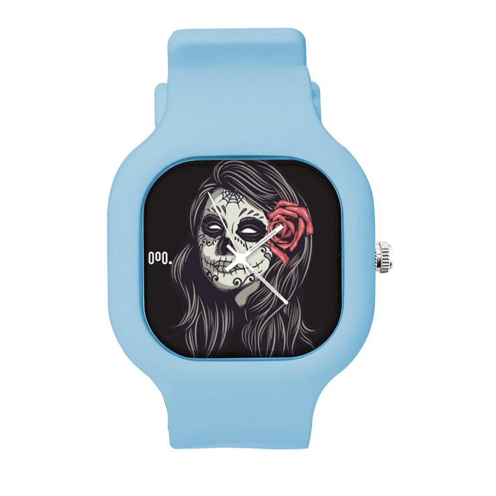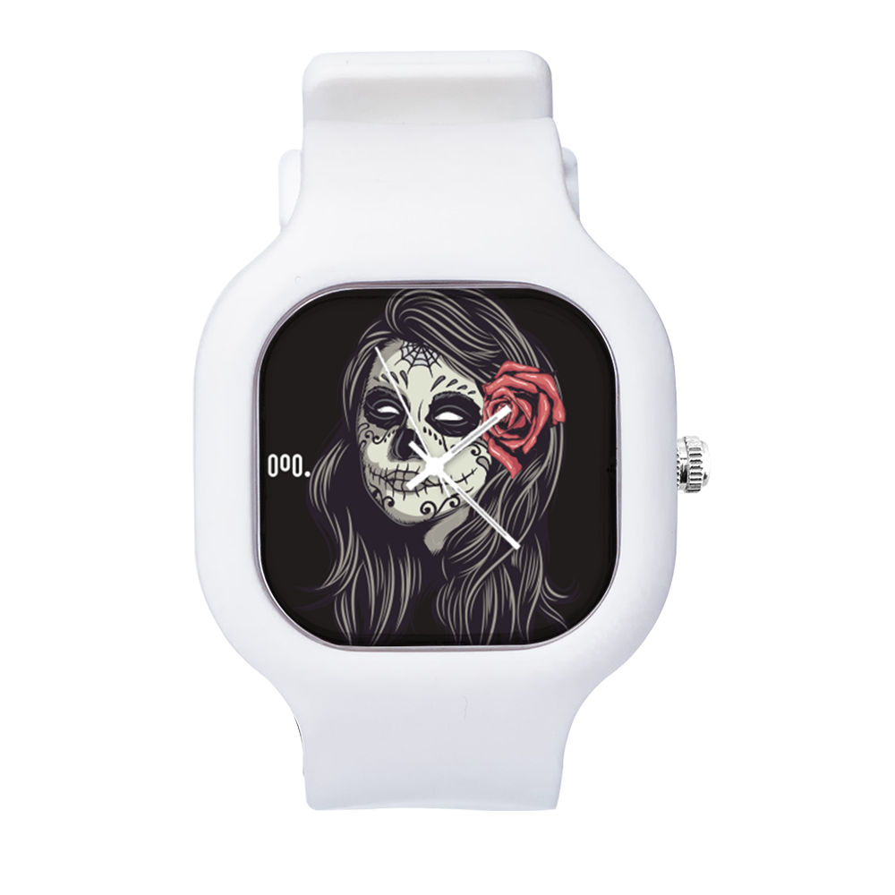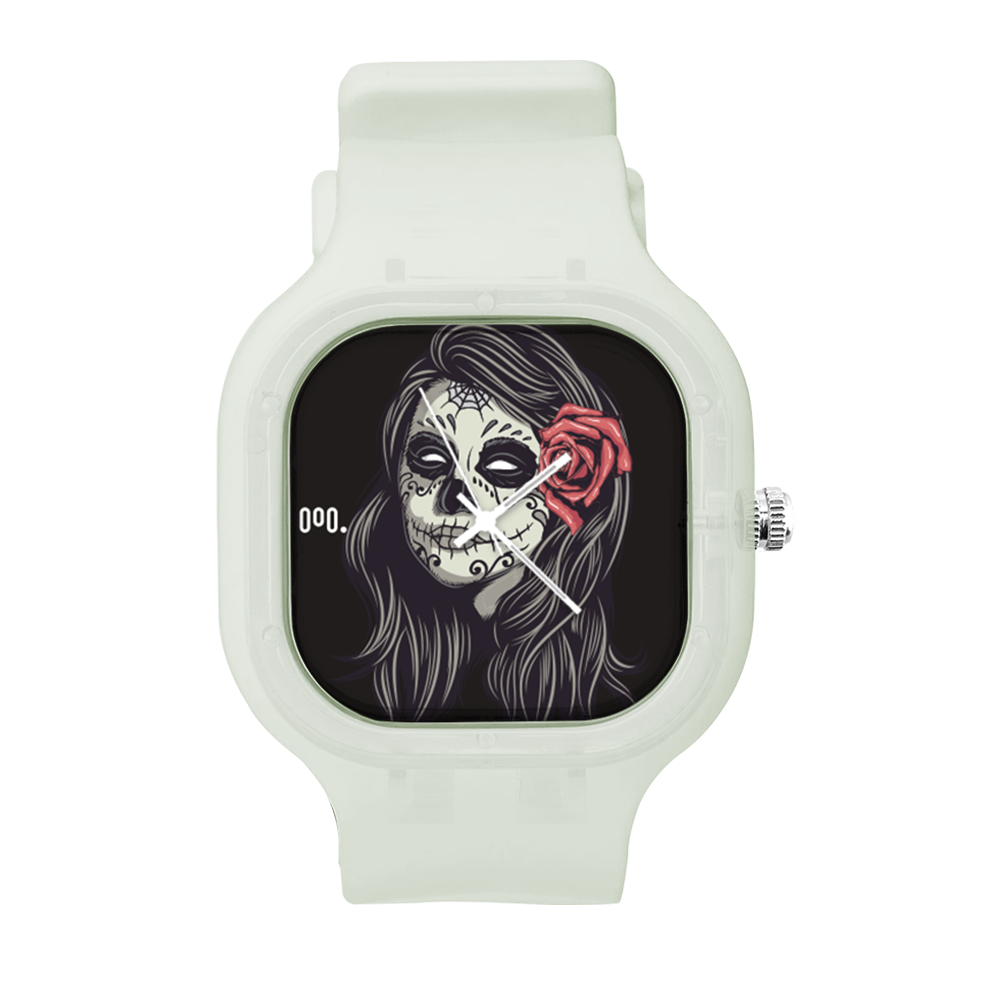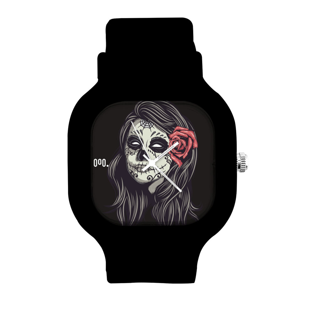 O Relógio La Muerte da Moov. Watches tem um design incrível que vai chamar atenção por onde você passar, sua pulseira de silicone é tao confortável e vai ajustar no seu pulso que você não vai sentir ele no seu pulso.