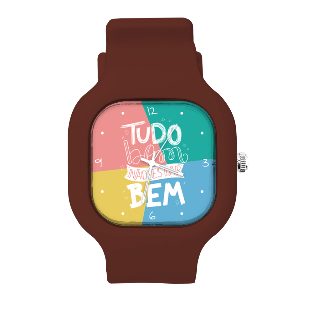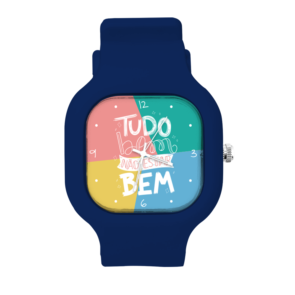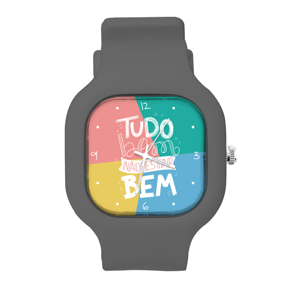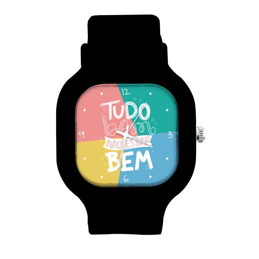 O Relógio Tudo bem Nao Estar Bem da Moov. Watches tem o design incrível que vai chamar atenção por onde você passar, sua pulseira de silicone é tão confortável que vai ajustar perfeitamente no seu braço que você não vai sentir ele no seu pulso.
