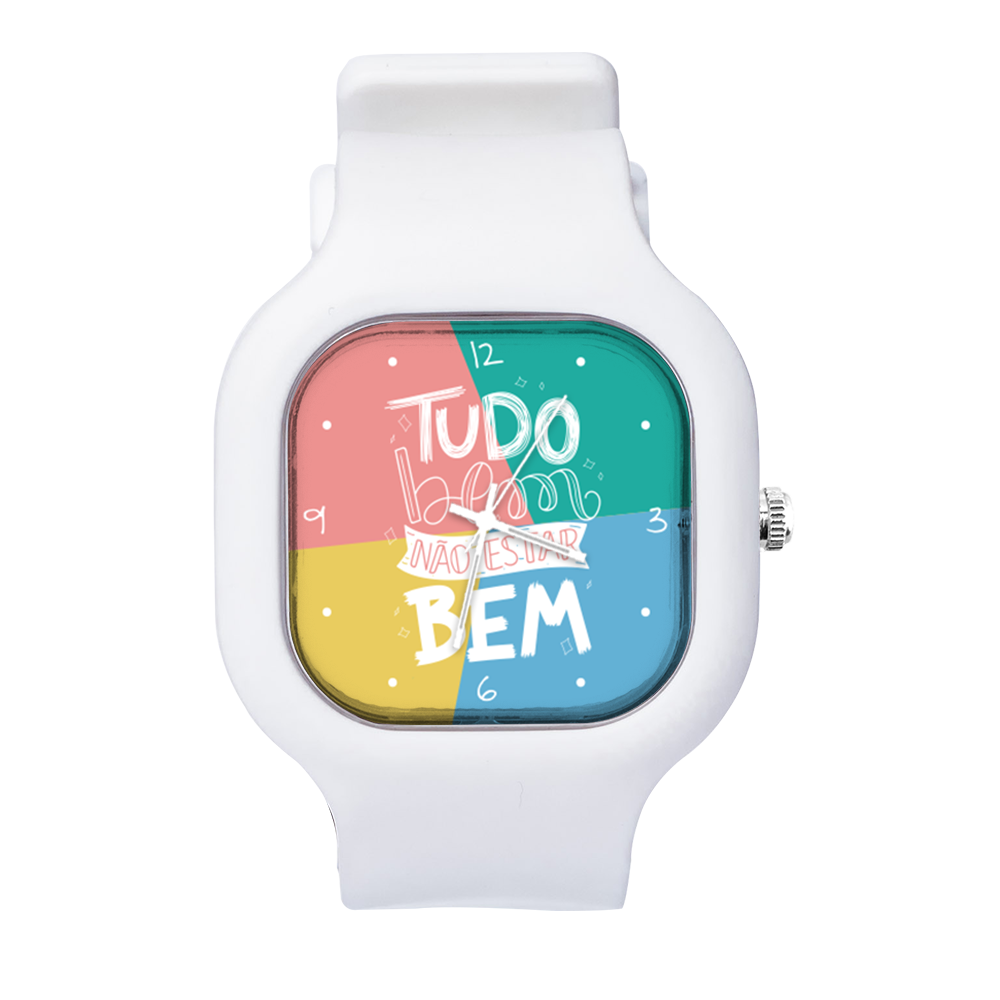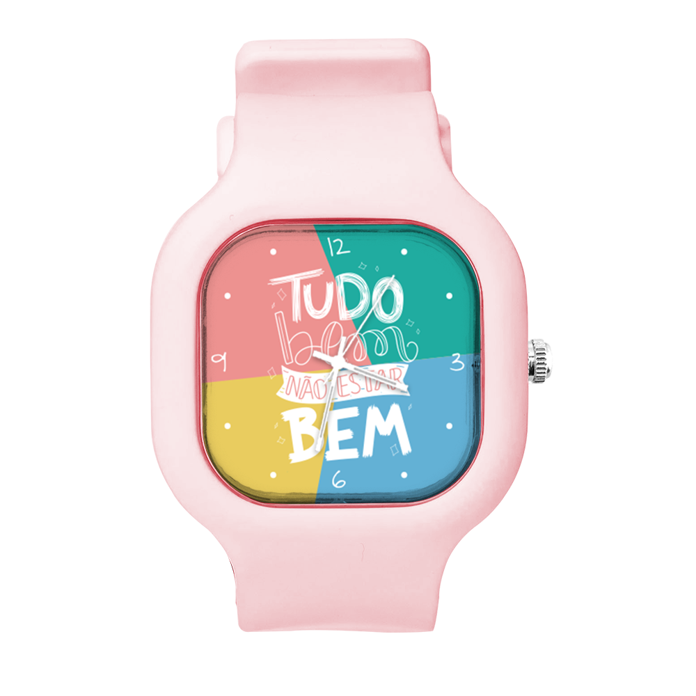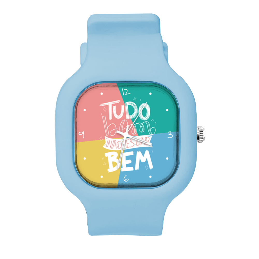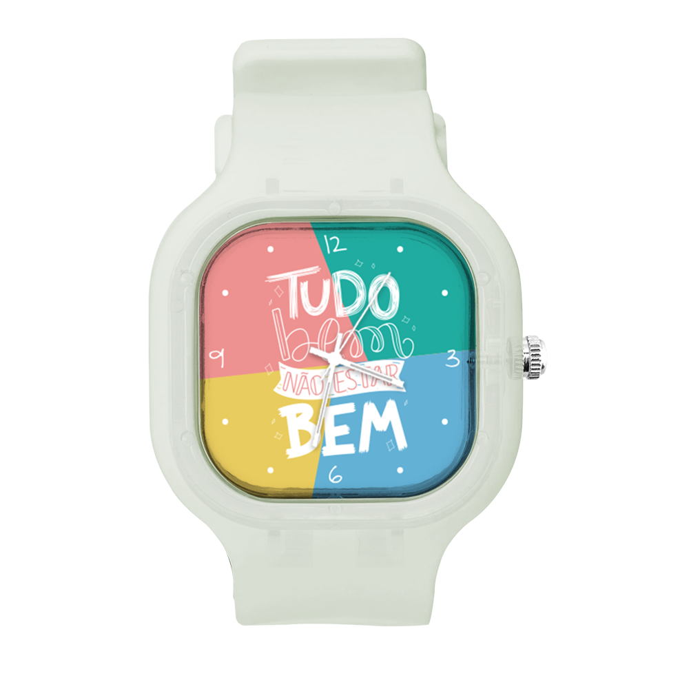 O Relógio Tudo bem Nao Estar Bem da Moov. Watches tem o design incrível que vai chamar atenção por onde você passar, sua pulseira de silicone é tão confortável que vai ajustar perfeitamente no seu braço que você não vai sentir ele no seu pulso.
