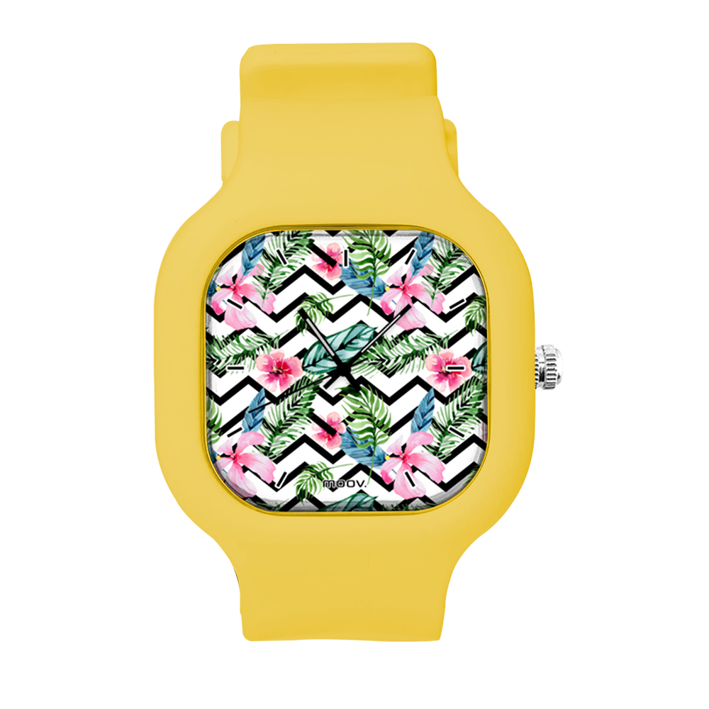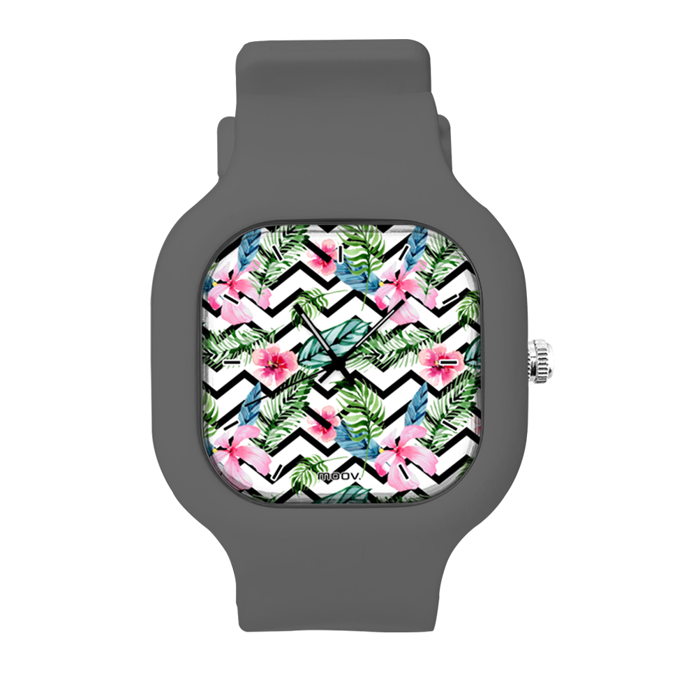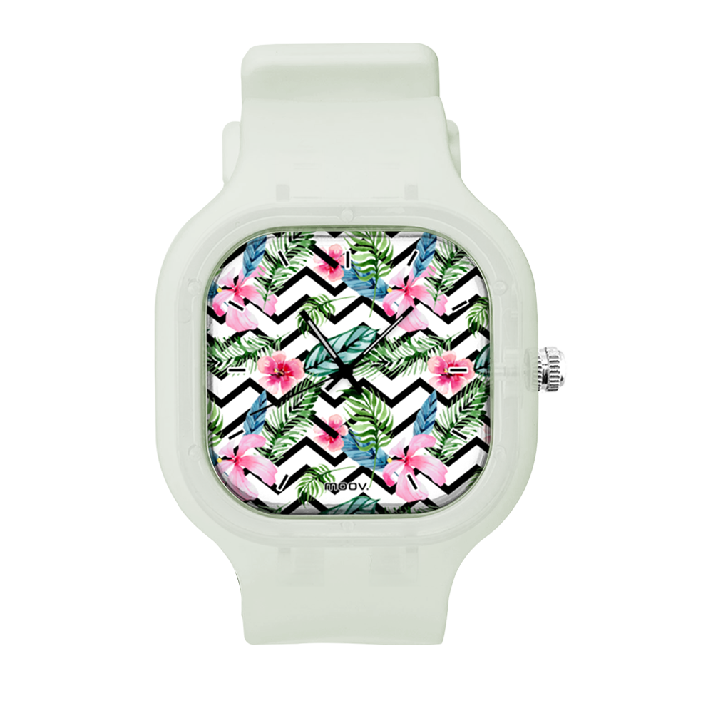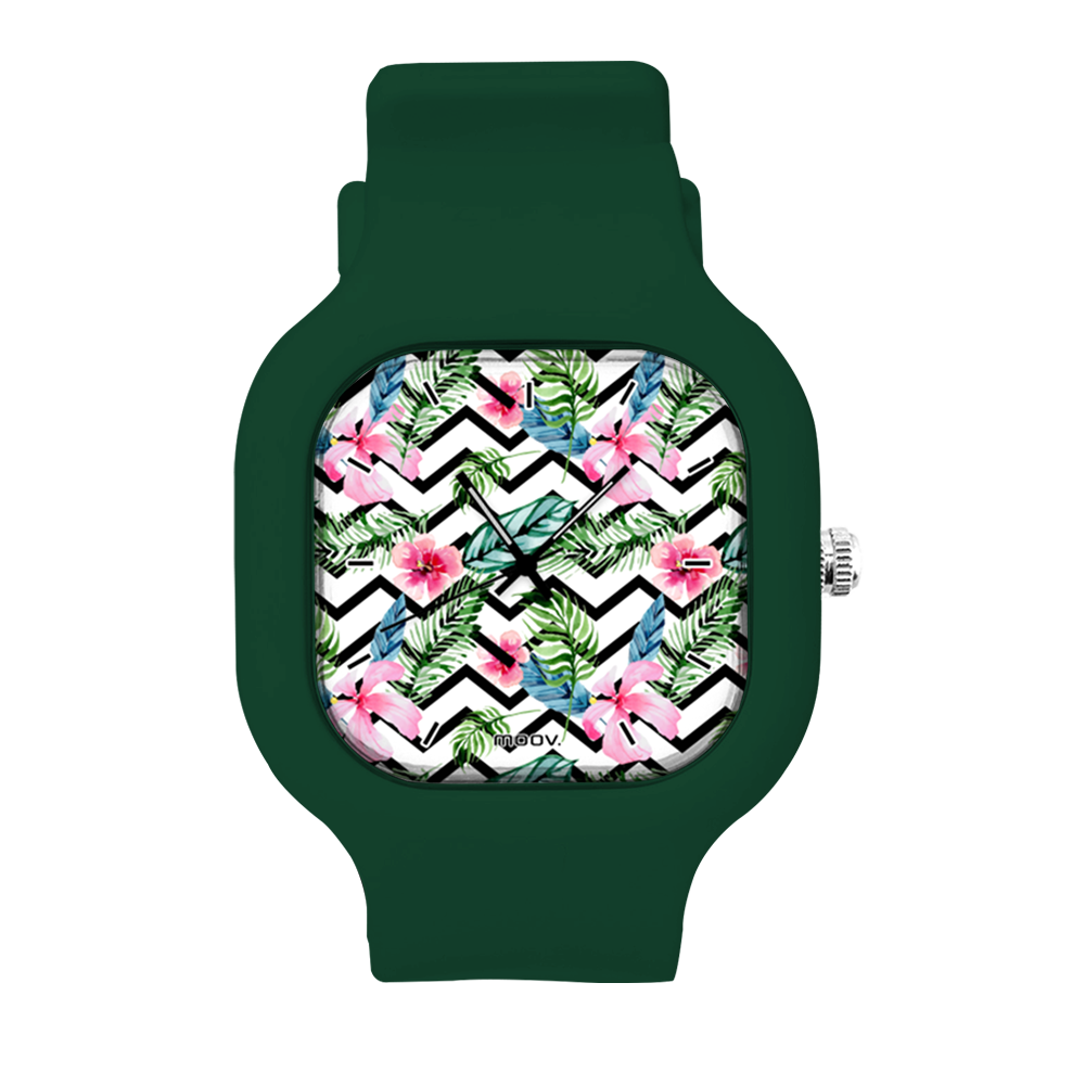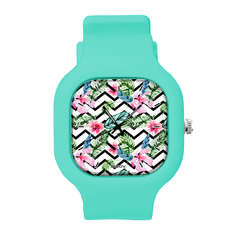O Relógio Modern Tropical da Moov. Watches tem um design incrível que vai chamar atenção por onde você passar, sua pulseira de silicone é tao confortável e vai ajustar no seu pulso que você não vai sentir ele no seu pulso.