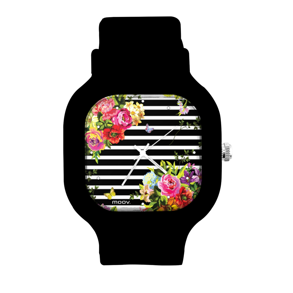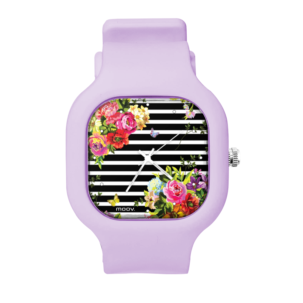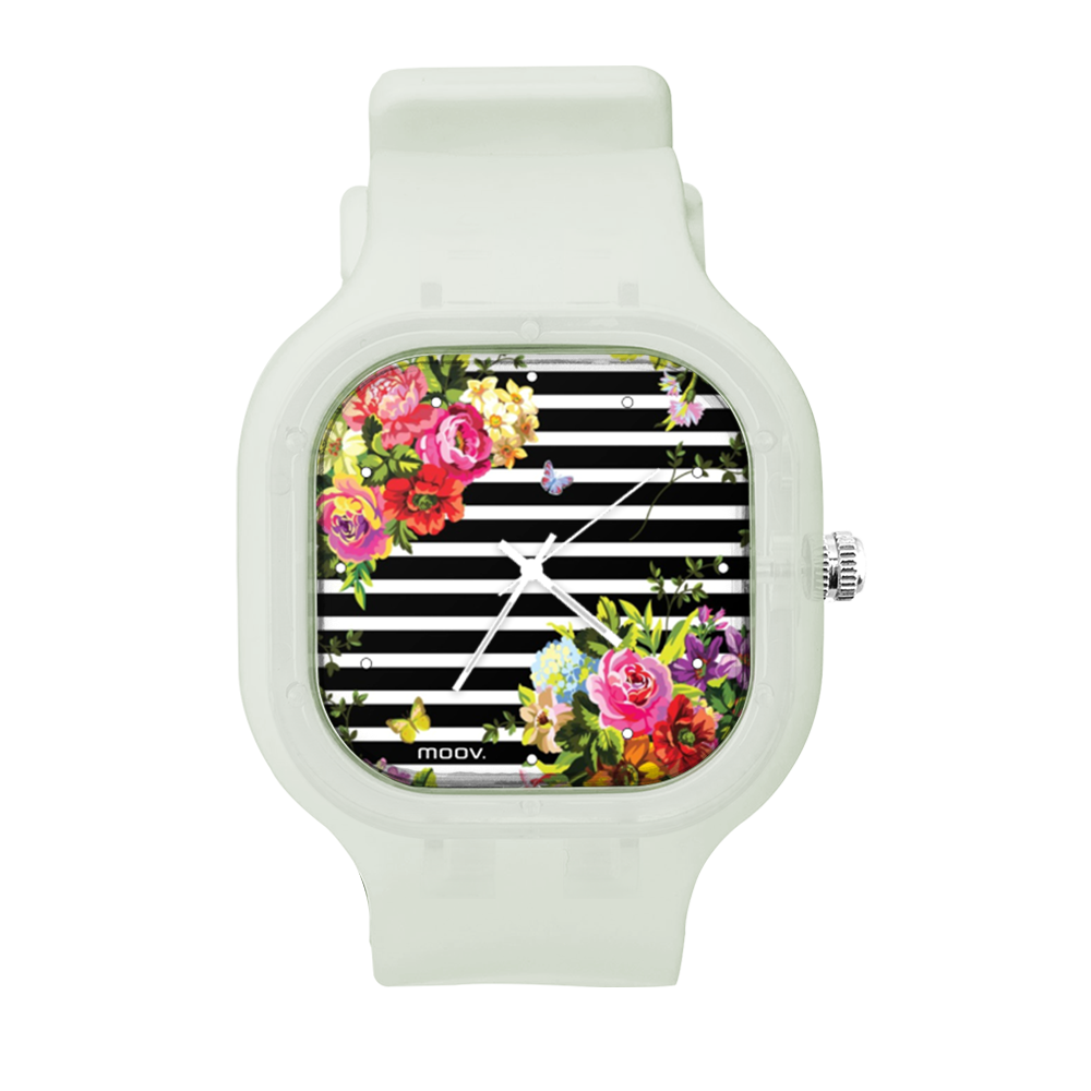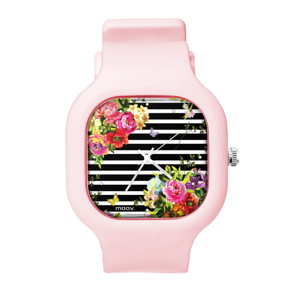 O Relógio Retro Flowers da Moov. Watches tem um design incrível que vai chamar atenção por onde você passar, sua pulseira de silicone é tao confortável e vai ajustar no seu pulso que você não vai sentir ele no seu pulso.