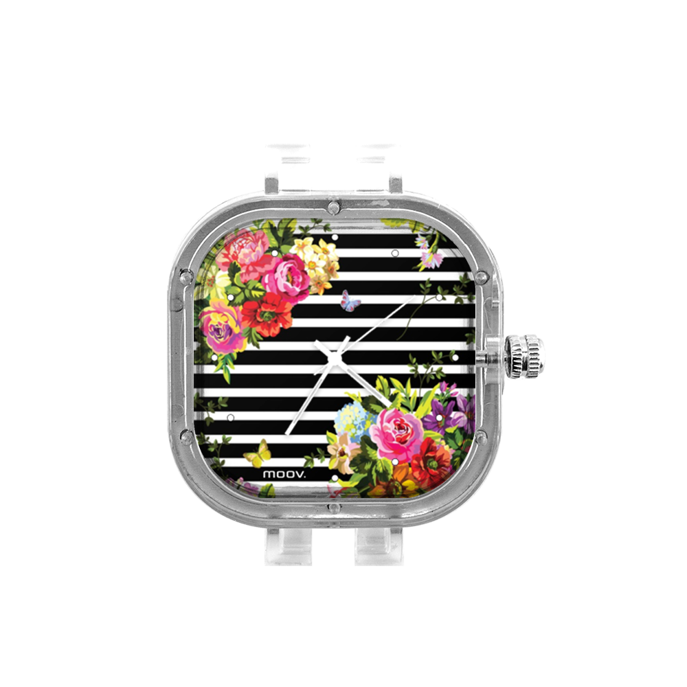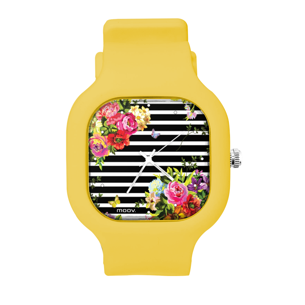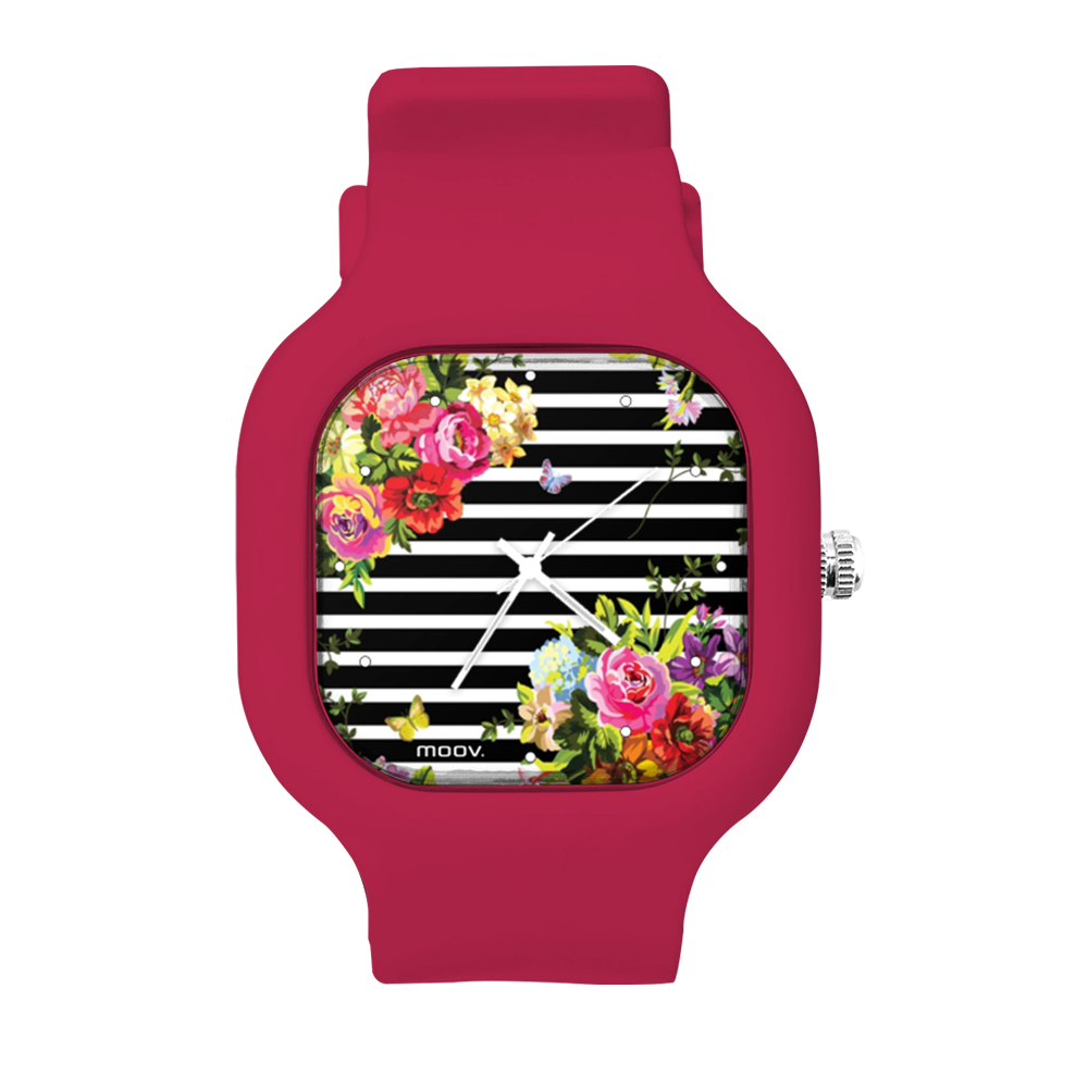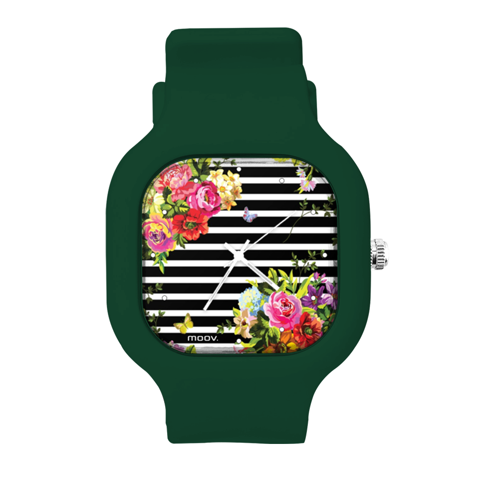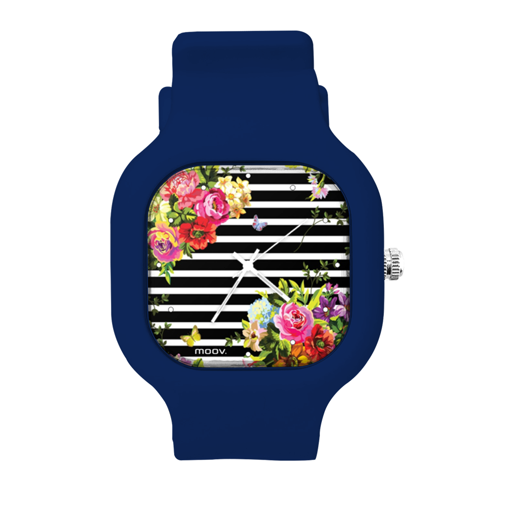 O Relógio Retro Flowers da Moov. Watches tem um design incrível que vai chamar atenção por onde você passar, sua pulseira de silicone é tao confortável e vai ajustar no seu pulso que você não vai sentir ele no seu pulso.