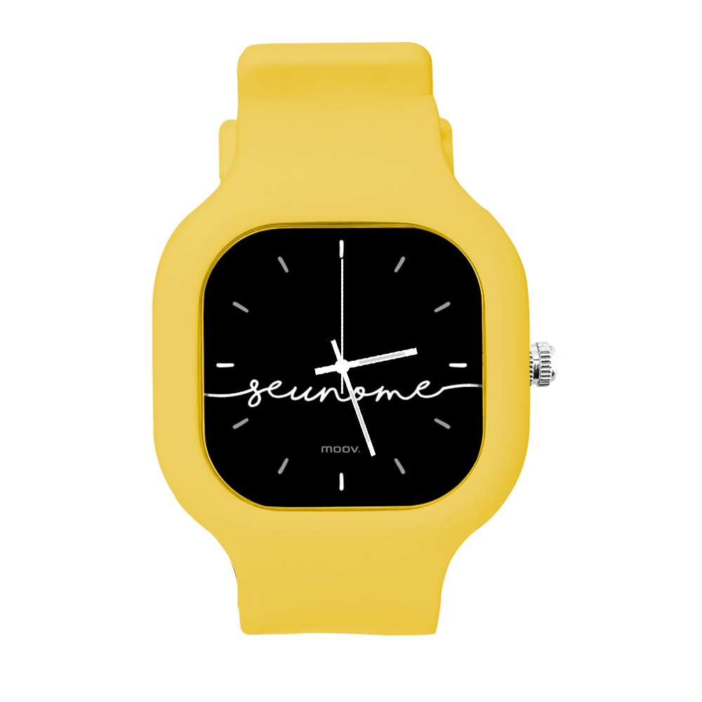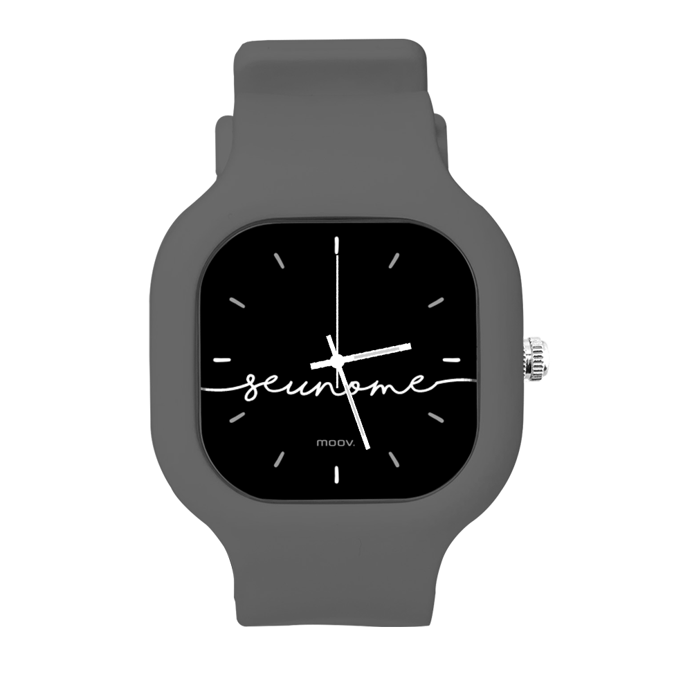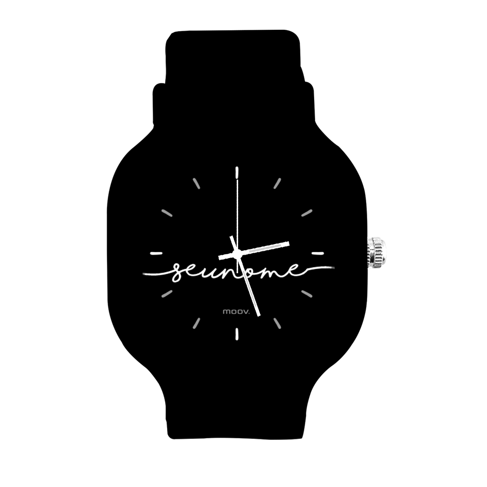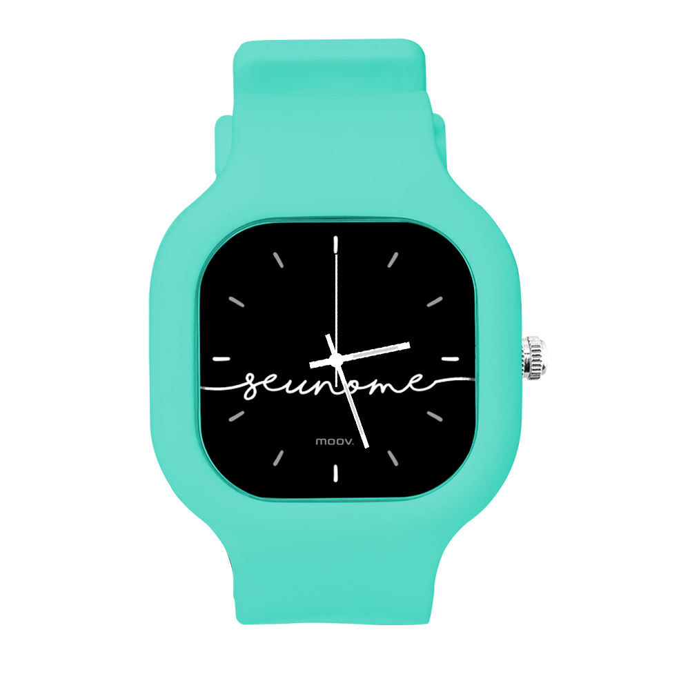 O Relógio Shorelines da Moov. Watches é o nosso queridinho! É um modelo personalizado em que você pode gravar o seu nome ou qualquer outro texto de sua preferência. Possui um design incrível que chama a atenção pode onde passa e sua pulseira de silicone é tão confortável que vai ajustar perfeitamente no seu pulso e você não vai nem sentir.